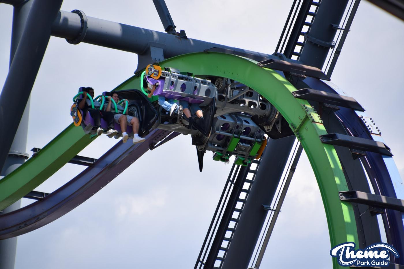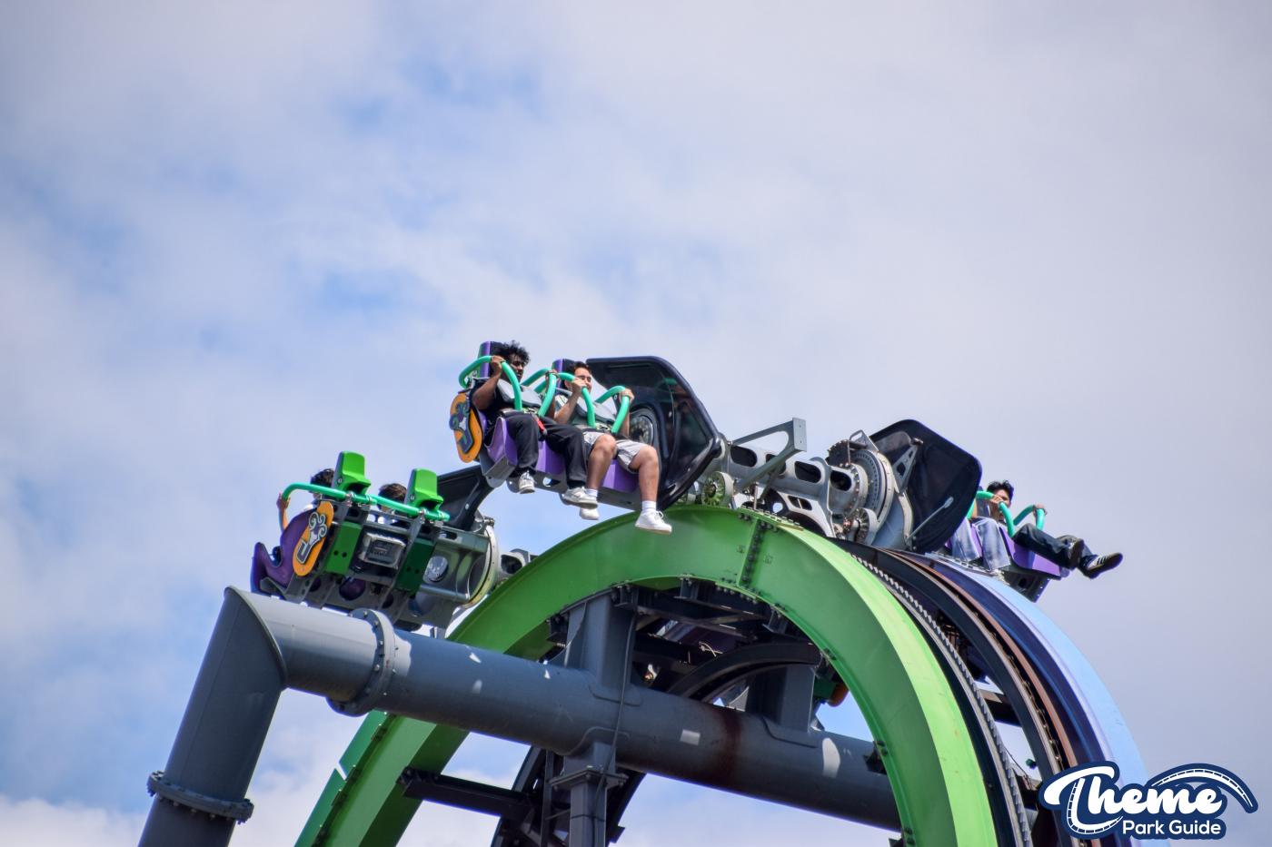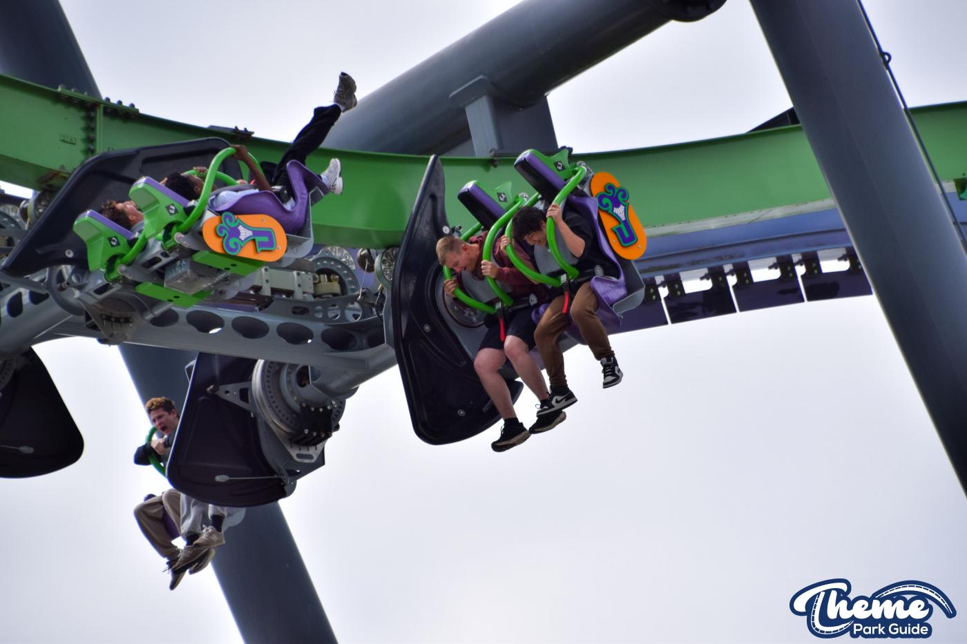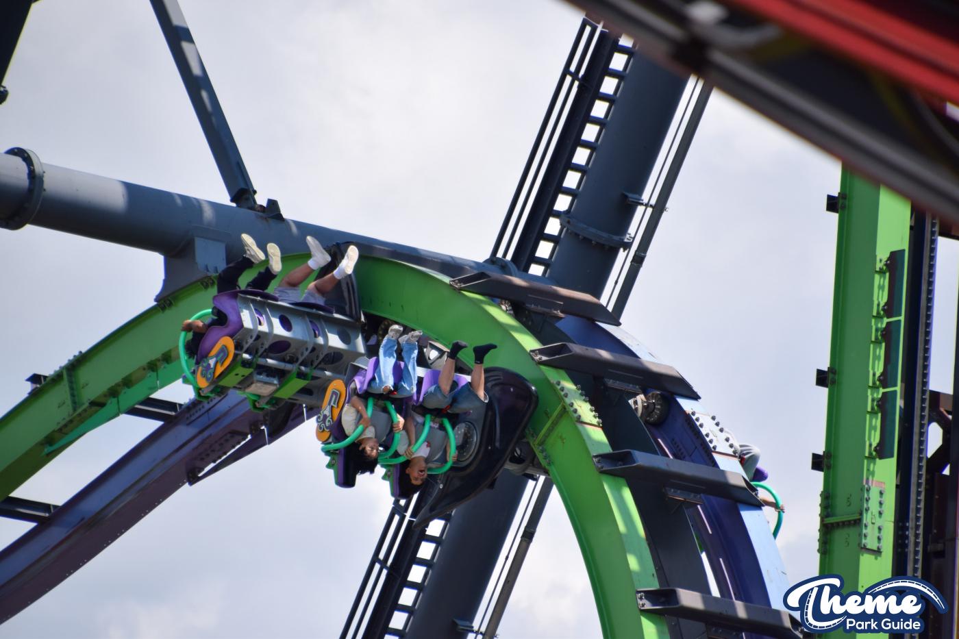 The Joker is a free-spin coaster with unpredictable movement. Cars rotate independently during the ride. Riders may flip multiple times or not at all. This randomness adds excitement. The ride features steep drops and twists. It offers a different experience every time.