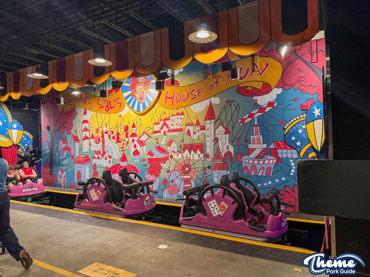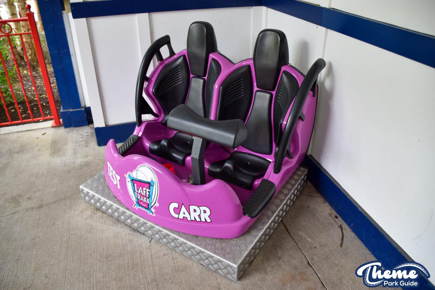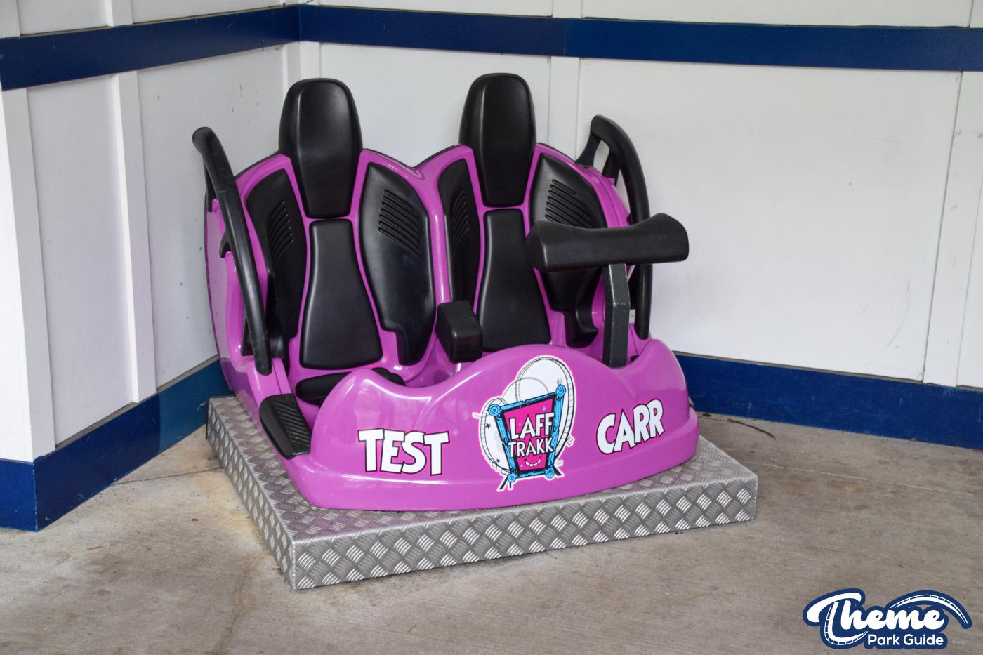 Laff Trakk is an indoor spinning coaster set inside a large funhouse-themed building. The ride takes place in the dark and uses neon lights, mirrors, and colorful patterns to create a playful atmosphere. Riders spin unpredictably while navigating small drops and turns, adding to the fun and confusion. Because it is indoors, Laff Trakk operates in most weather conditions. The air conditioning also makes it a popular ride on hot summer days. Its unique theme and spinning motion make it stand out from outdoor coasters.