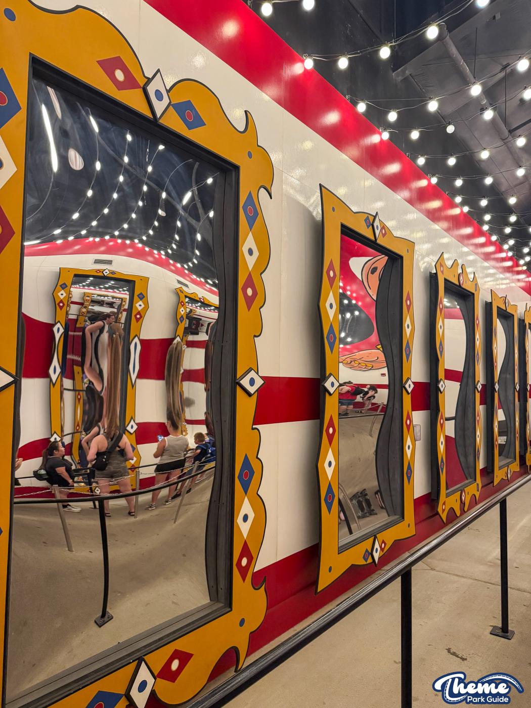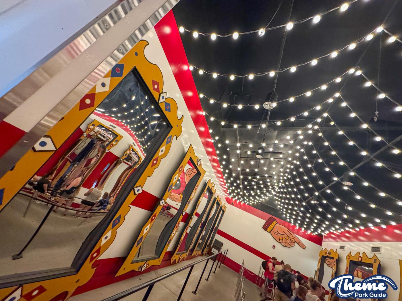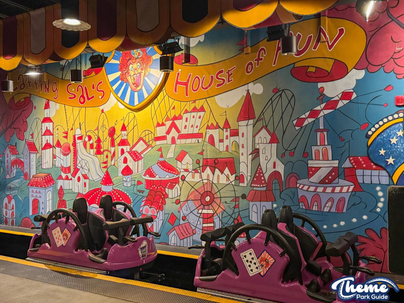 Laff Trakk is an indoor spinning coaster set inside a large funhouse-themed building. The ride takes place in the dark and uses neon lights, mirrors, and colorful patterns to create a playful atmosphere. Riders spin unpredictably while navigating small drops and turns, adding to the fun and confusion. Because it is indoors, Laff Trakk operates in most weather conditions. The air conditioning also makes it a popular ride on hot summer days. Its unique theme and spinning motion make it stand out from outdoor coasters.