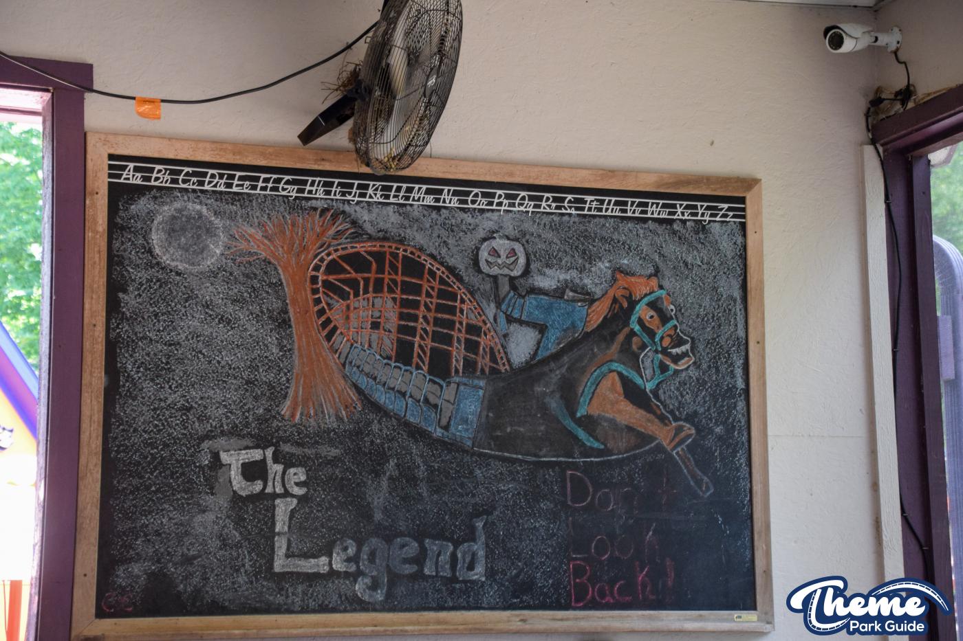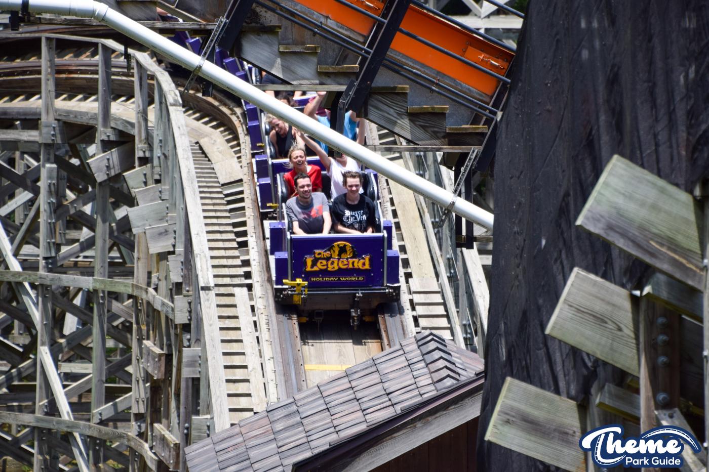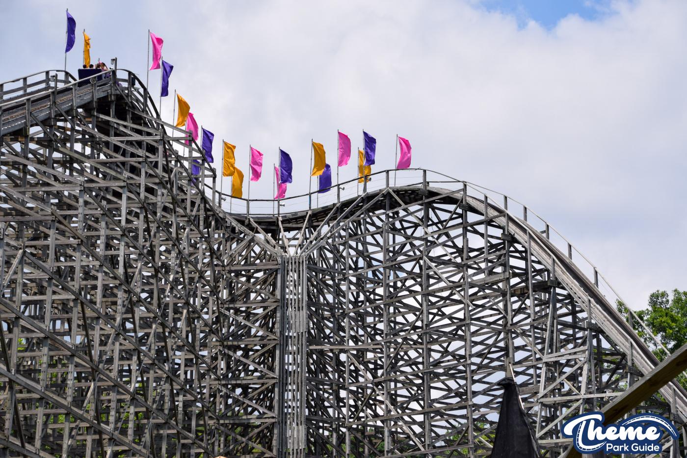The Legend is inspired by the story of Ichabod Crane and the Headless Horseman, and its layout reflects that adventurous, haunted theme. The coaster is filled with powerful laterals, twisting track elements, and terrain-hugging drops that make it one of Holiday World’s most forceful wooden coasters. Sound effects and themed elements further enhance the spooky narrative as riders careen through the woods.