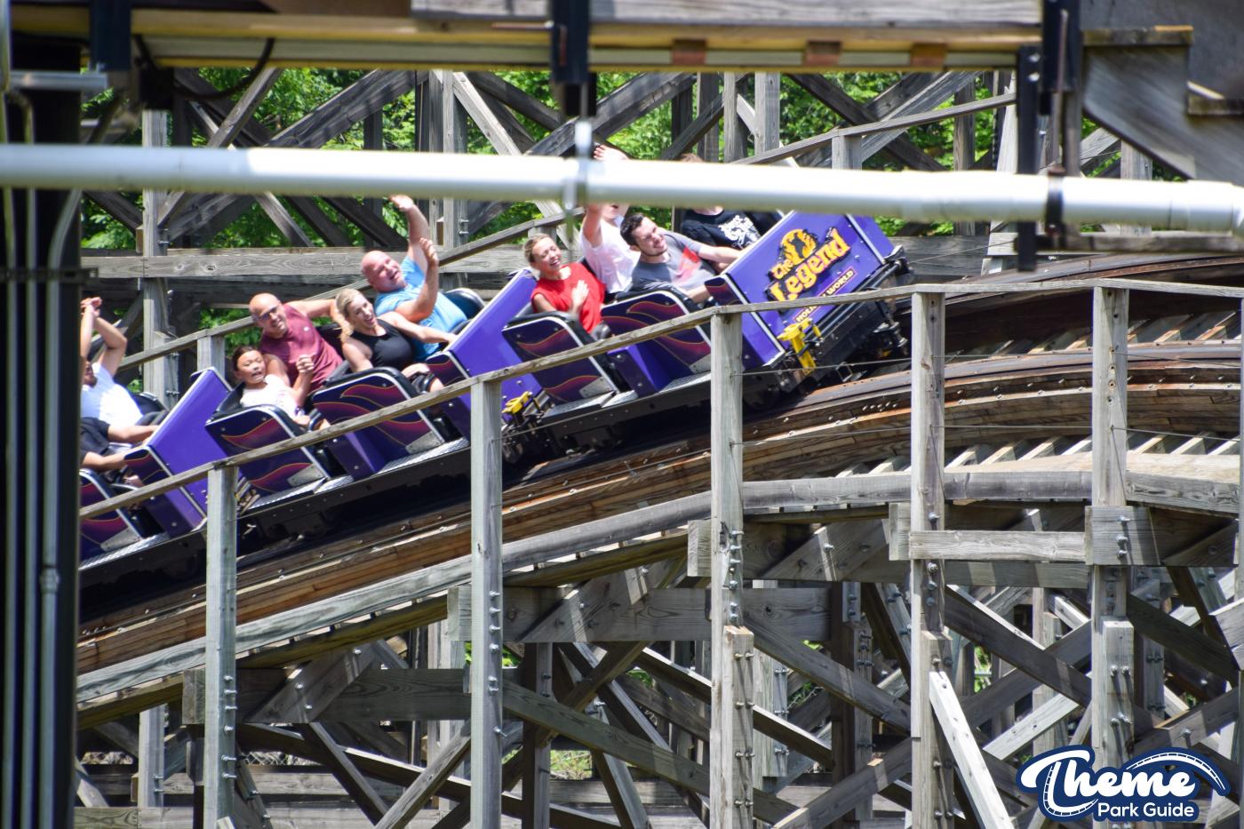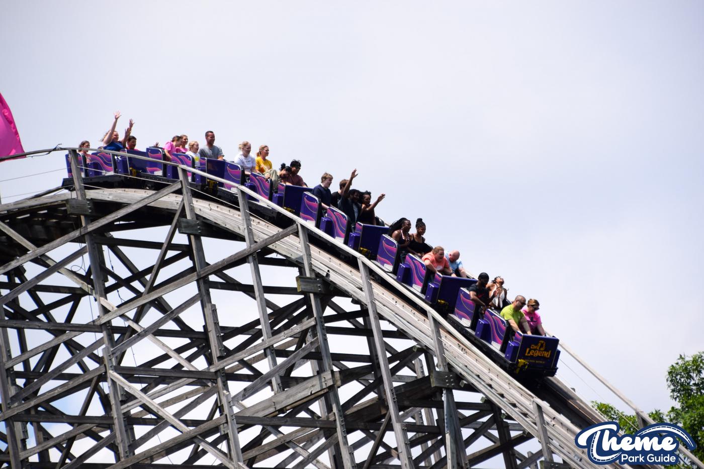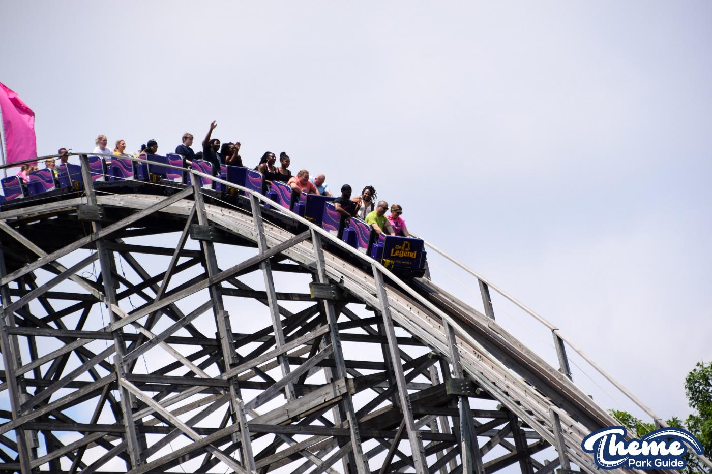 The Legend is inspired by the story of Ichabod Crane and the Headless Horseman, and its layout reflects that adventurous, haunted theme. The coaster is filled with powerful laterals, twisting track elements, and terrain-hugging drops that make it one of Holiday World’s most forceful wooden coasters. Sound effects and themed elements further enhance the spooky narrative as riders careen through the woods.
