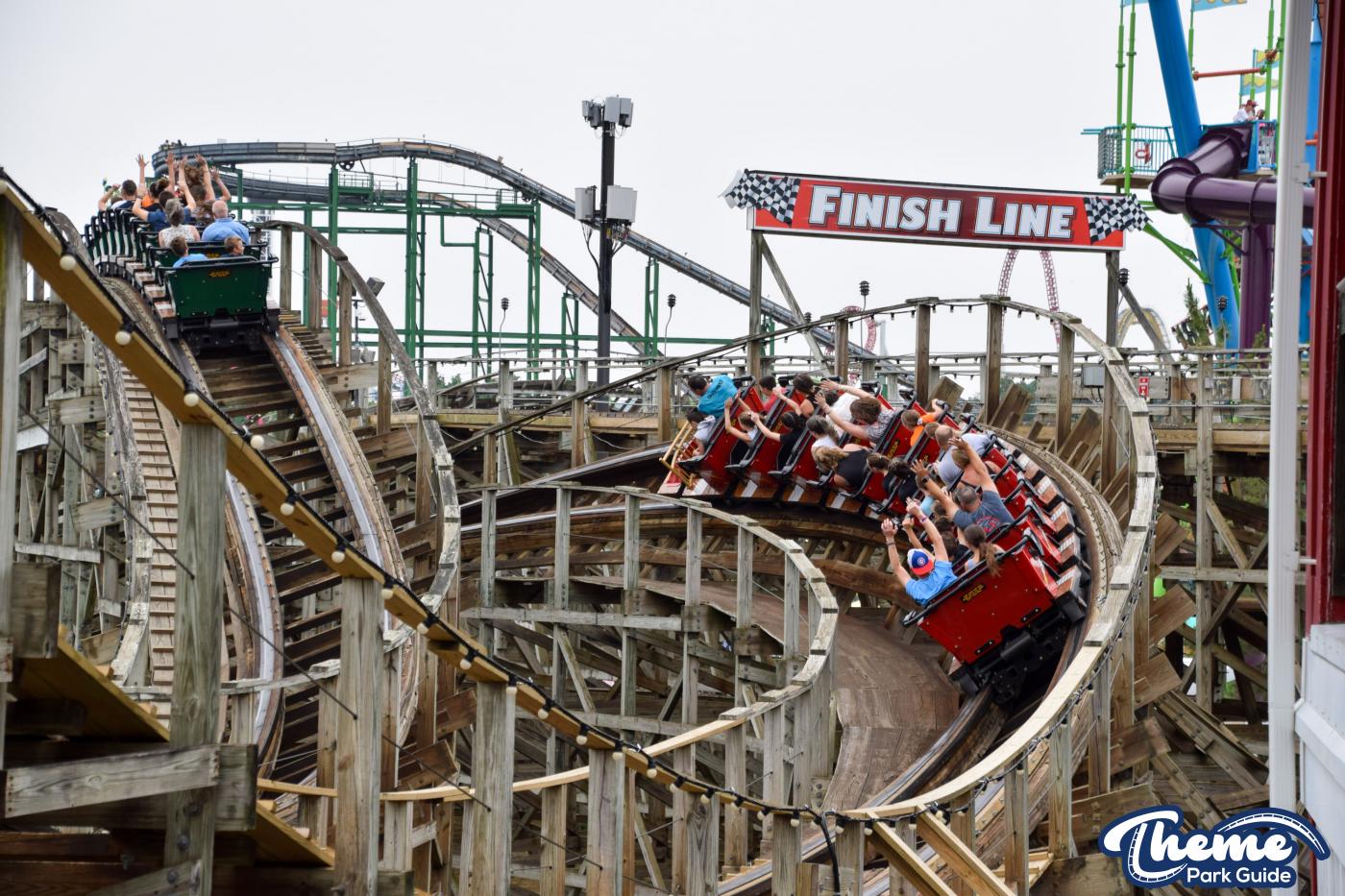 Lightning Racer is a dueling wooden roller coaster with two tracks called Thunder and Lightning. The ride is designed to race both trains side by side, creating a competitive and exciting experience. It features multiple airtime hills, fast turns, and smooth transitions for a wooden coaster. Riders often enjoy trying both sides to see which track feels faster or more intense. The coaster is especially popular during busy days when both tracks are running together. Lightning Racer is considered one of the best wooden coasters at Hersheypark.