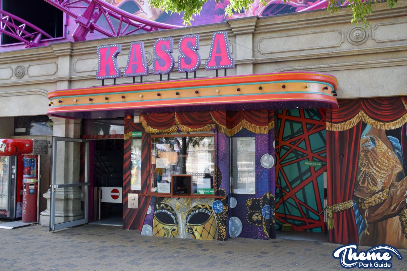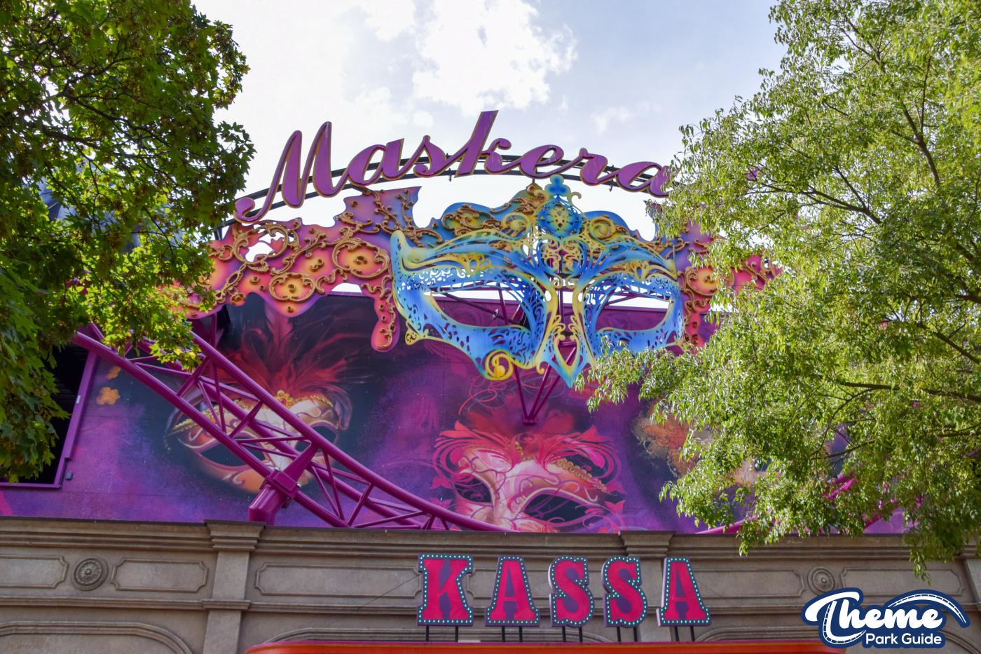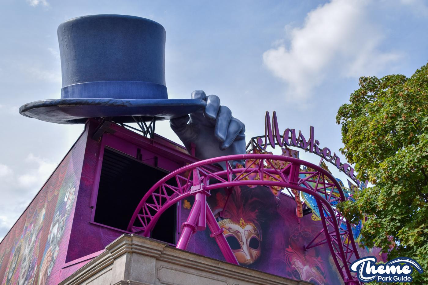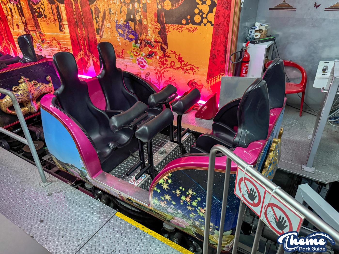 The staged spinning coaster with the theme "masquerade" is intended to form a connection between roller coaster and carousel. The ride starts in the inner area as the beginning of a journey through time through a world related to the theme of "masquerade", which is divided into several sections.