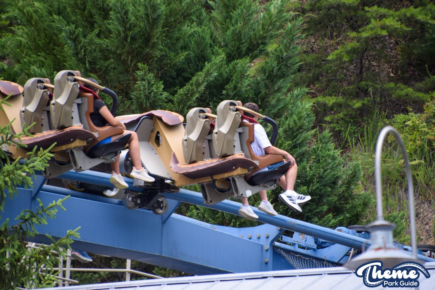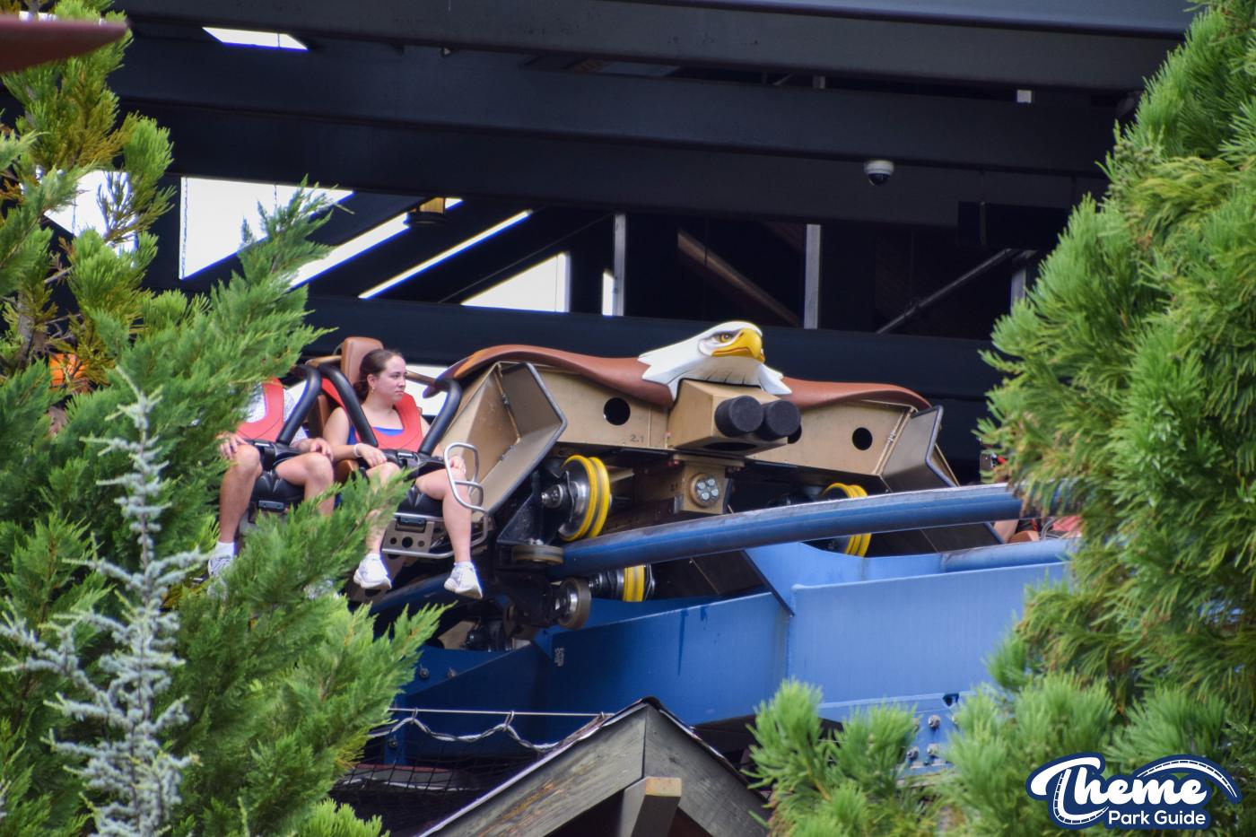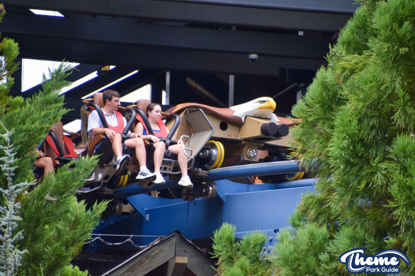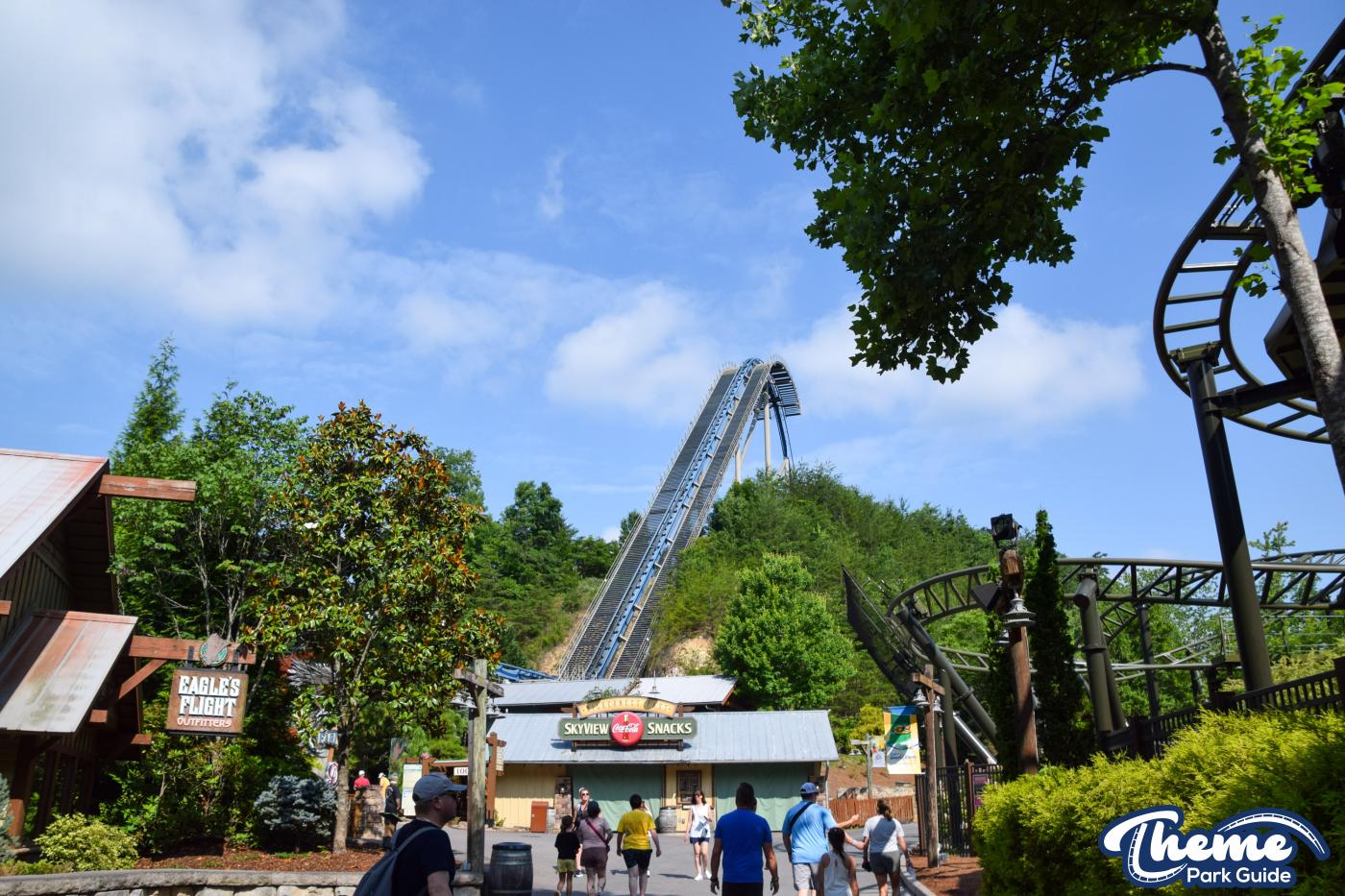 Wild Eagle is America’s first wing coaster, sending riders gliding high above Dollywood with seats positioned beside the track rather than above it. This unique design creates a soaring, eagle-like sensation as guests experience massive loops, smooth inversions, and sweeping curves. The ride’s elevated location on the mountain ridge enhances the illusion of flight, providing stunning views combined with graceful thrills.