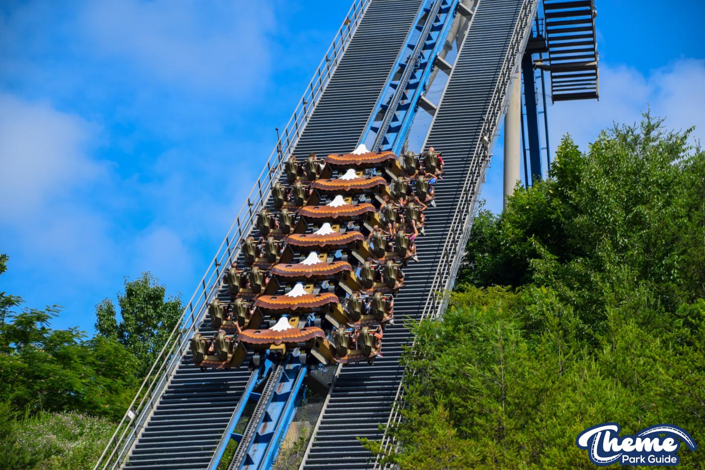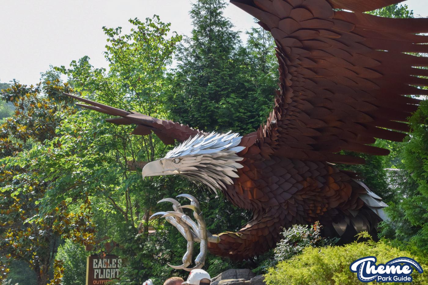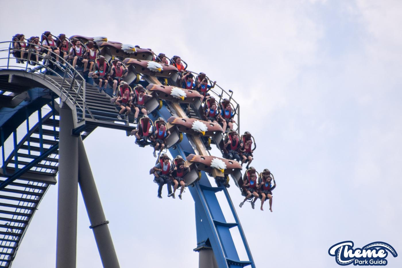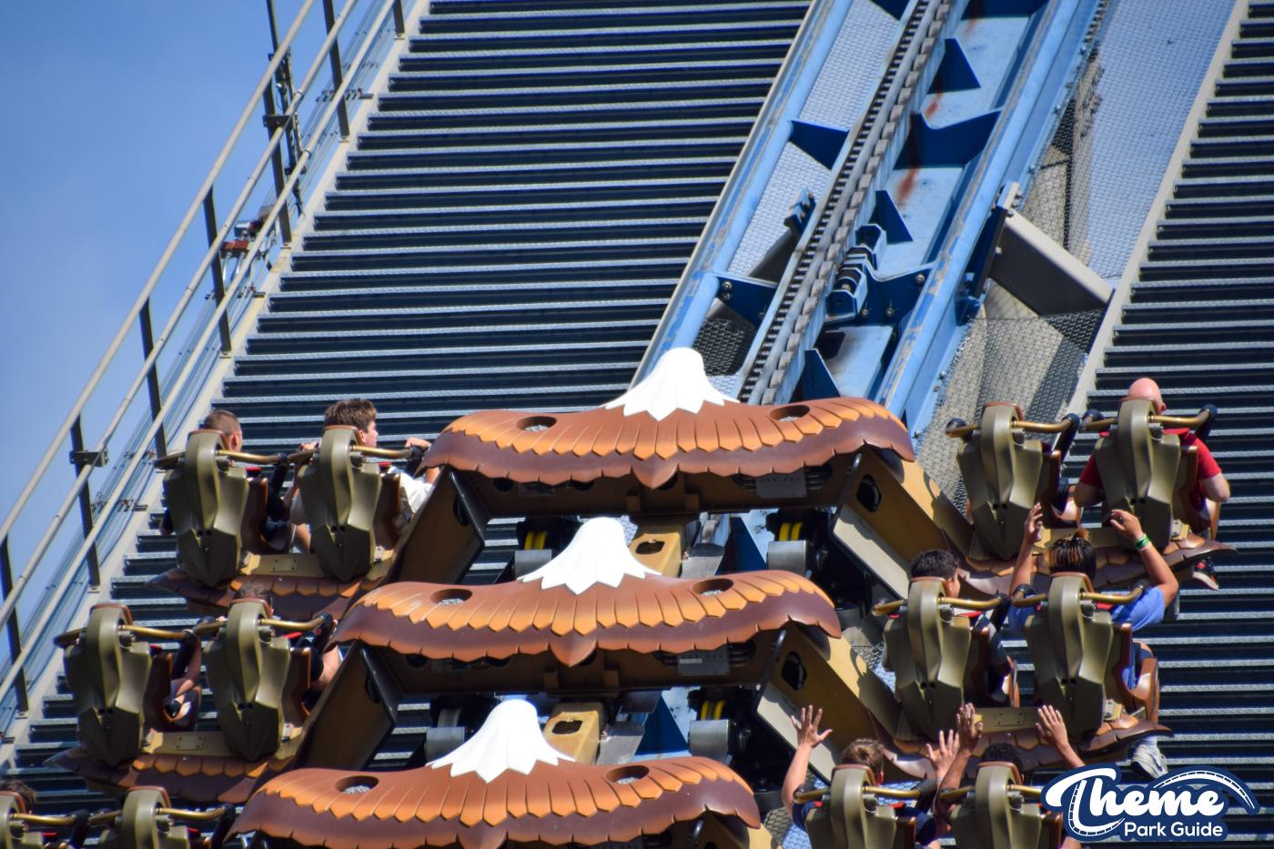 Wild Eagle is America’s first wing coaster, sending riders gliding high above Dollywood with seats positioned beside the track rather than above it. This unique design creates a soaring, eagle-like sensation as guests experience massive loops, smooth inversions, and sweeping curves. The ride’s elevated location on the mountain ridge enhances the illusion of flight, providing stunning views combined with graceful thrills.
