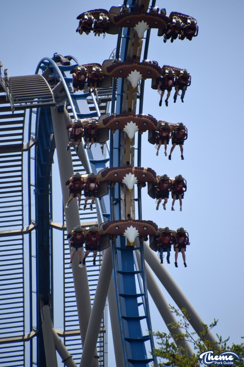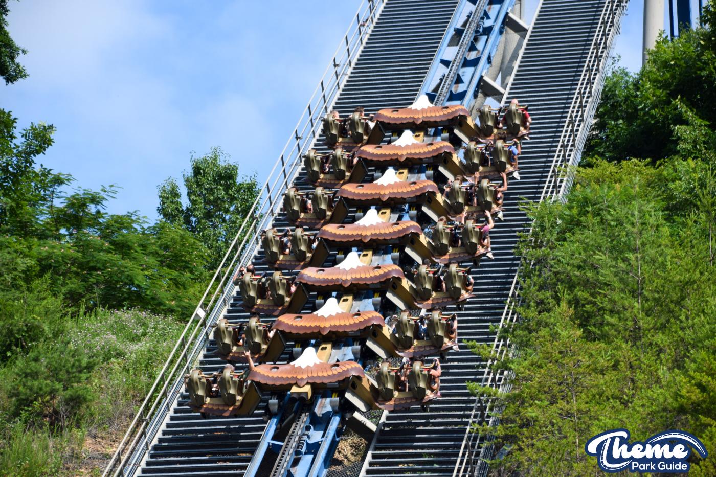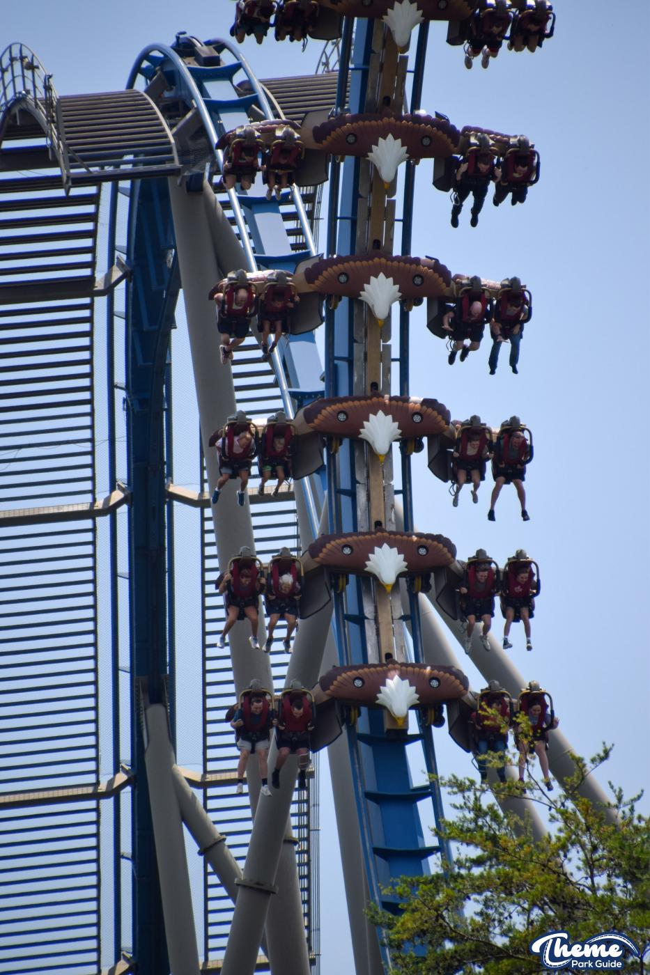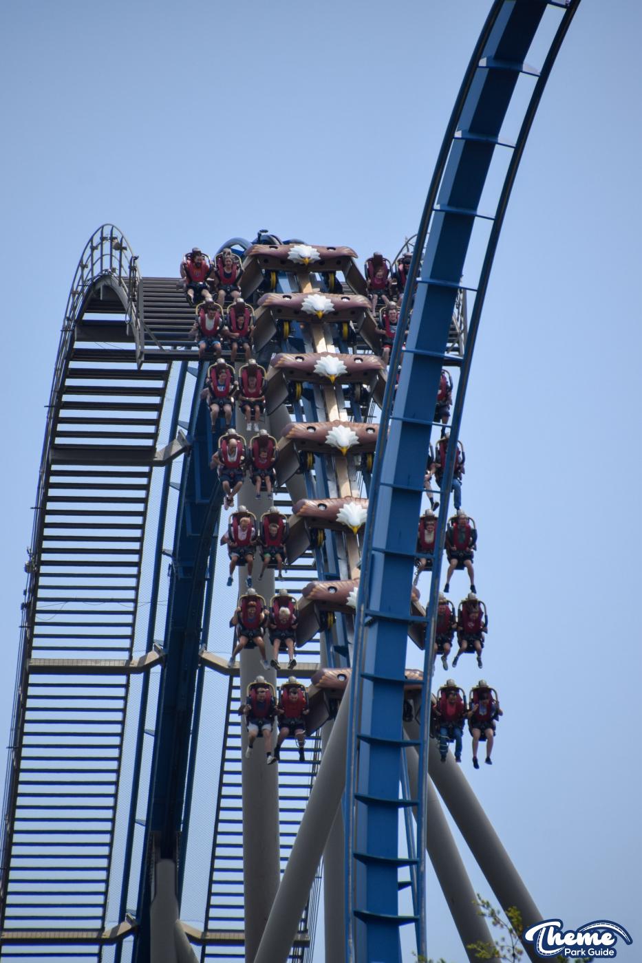 Wild Eagle is America’s first wing coaster, sending riders gliding high above Dollywood with seats positioned beside the track rather than above it. This unique design creates a soaring, eagle-like sensation as guests experience massive loops, smooth inversions, and sweeping curves. The ride’s elevated location on the mountain ridge enhances the illusion of flight, providing stunning views combined with graceful thrills.