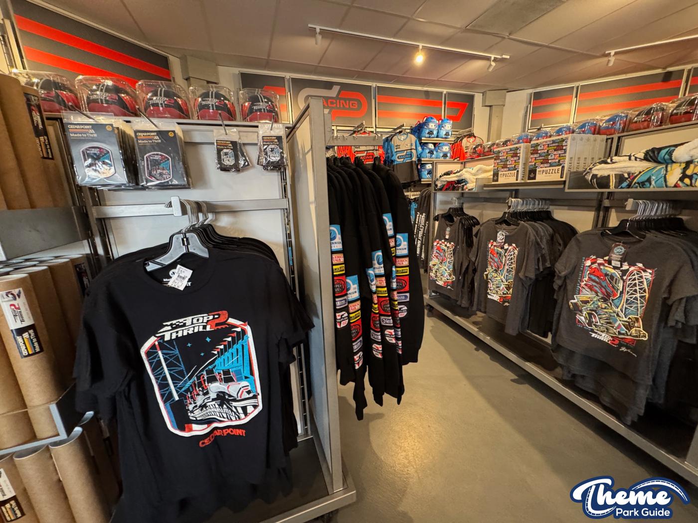 The CP Racing Store at Cedar Point is not a ride but a retail experience geared toward coaster fans and thrill-seekers. It’s styled like a high-performance motorsport shop, selling Cedar Point-branded gear such as T-shirts, jackets, hats, collectibles, and memorabilia, especially themed around their most extreme coasters like Top Thrill 2.