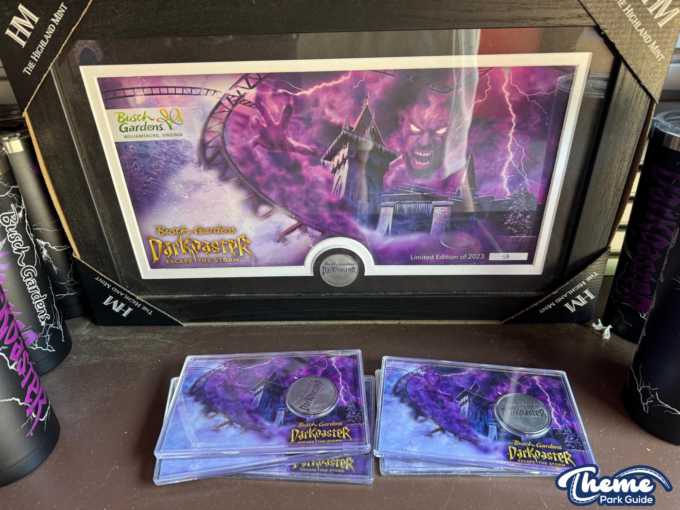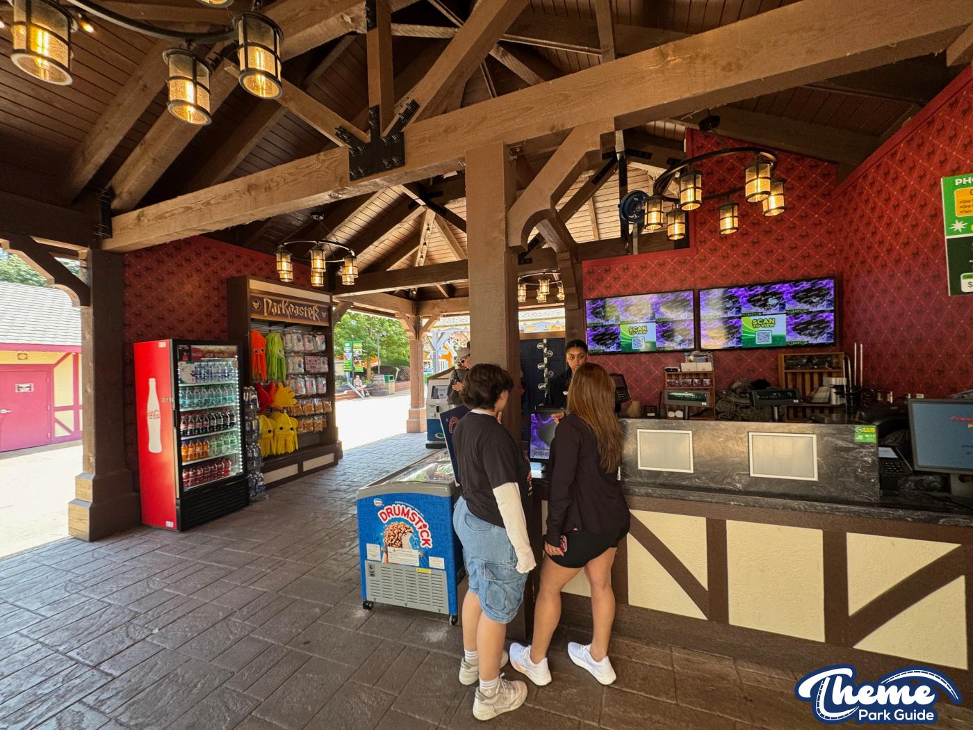 The DarKoaster-themed exit shop offers a small selection of storm-and-castle-inspired souvenirs for guests leaving the ride. Inside, visitors can browse simple keepsakes like shirts, pins, and ride photos—all designed to match the dark, mysterious atmosphere of the attraction. It’s a quick stop for anyone wanting a themed memento before heading back into the park.
