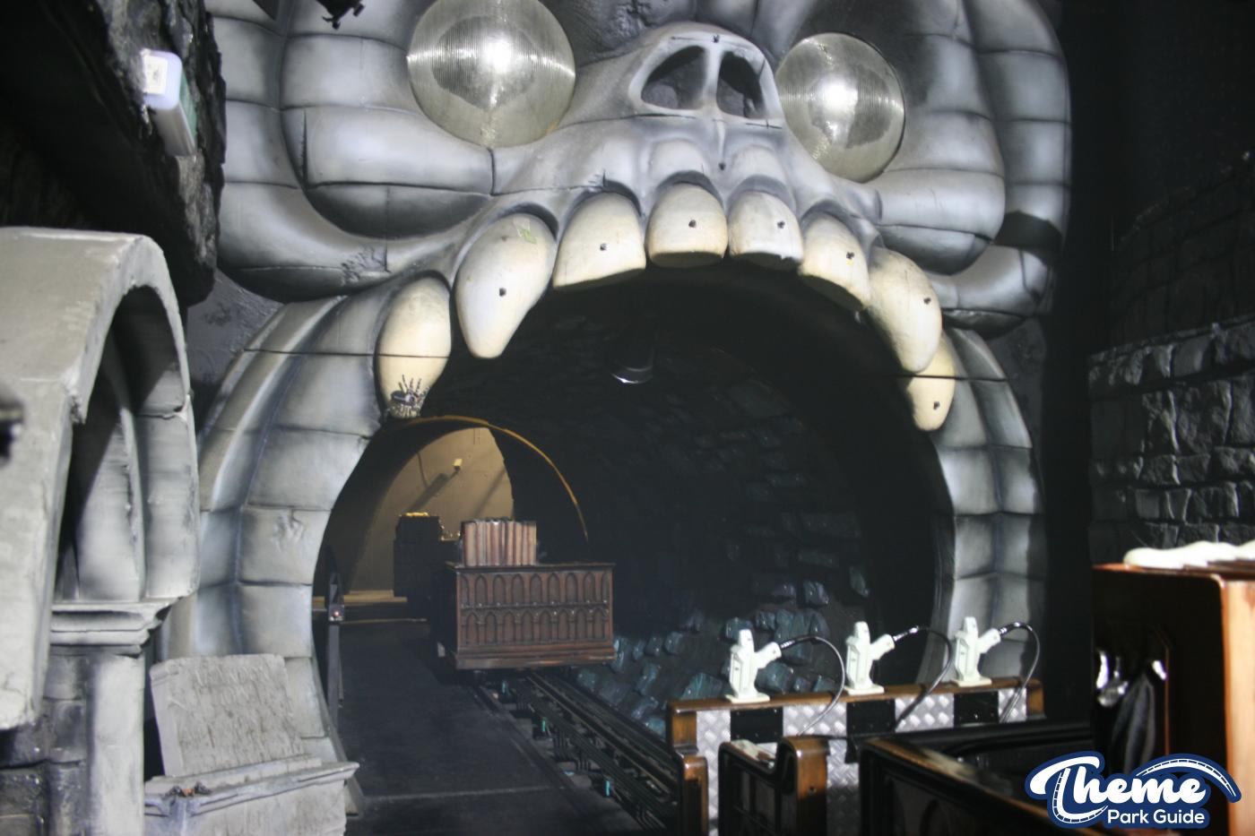 Opening in its original form in 1992, The Haunted House was the first (and only) ghost train in the UK built on a professional scale. With scary scenery such as a giant with grabbing fingers, an exploding skeleton on a toilet and a cinematic finale through a slimy swamp, the Haunted House was a loud, fast-paced experience that border lined on extremely scary for some.