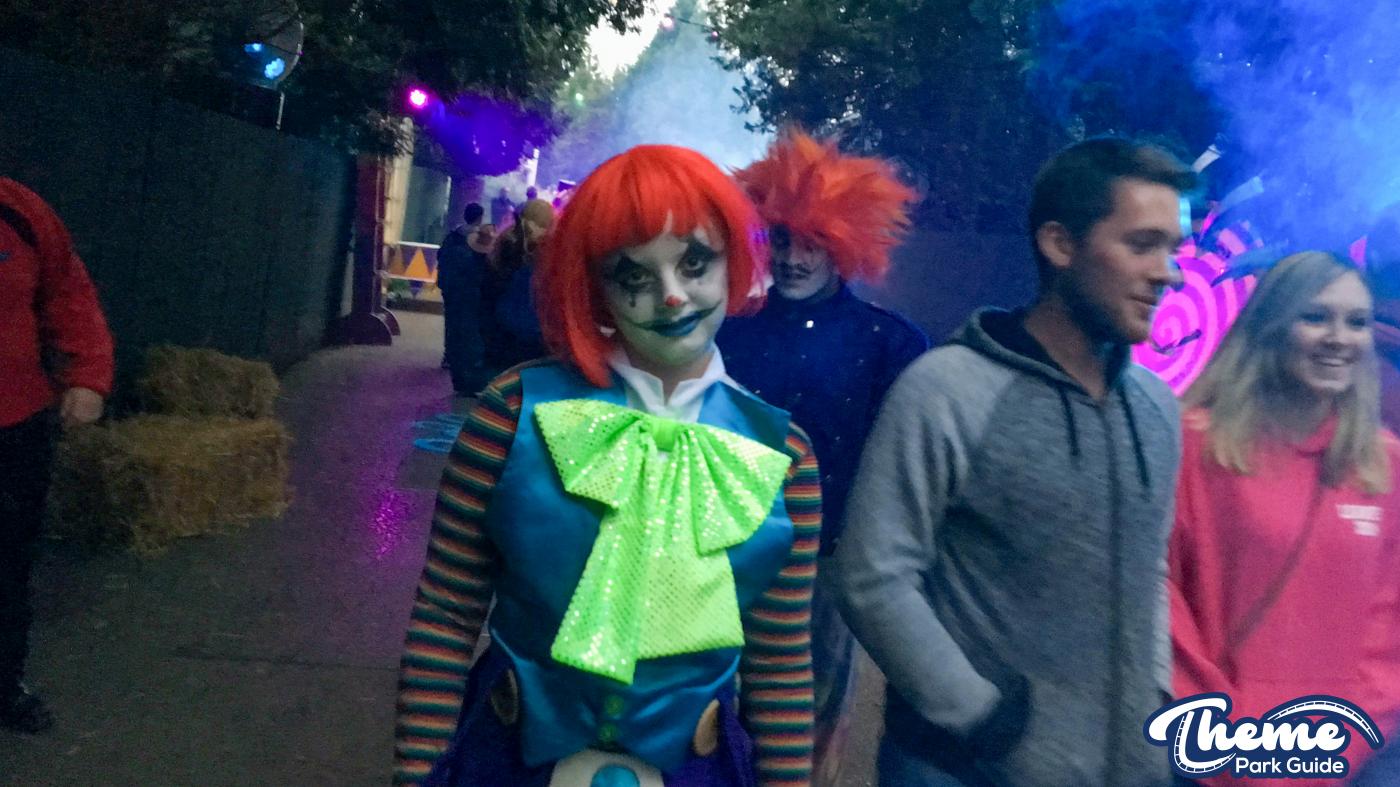 Freak Show was a carnival style scare zone, along the walkway are all the freaks that are part of the show such as The Bearded Lady, Strong Man and The Ringmaster plus lots more. The walkway is quite compact so allows the actors to get up close and personal to the guests, however, during the opening show they close the walkway off so once it gets opened this causes a lot of footfall through the area so actors cannot perform as many scares as they could normally.