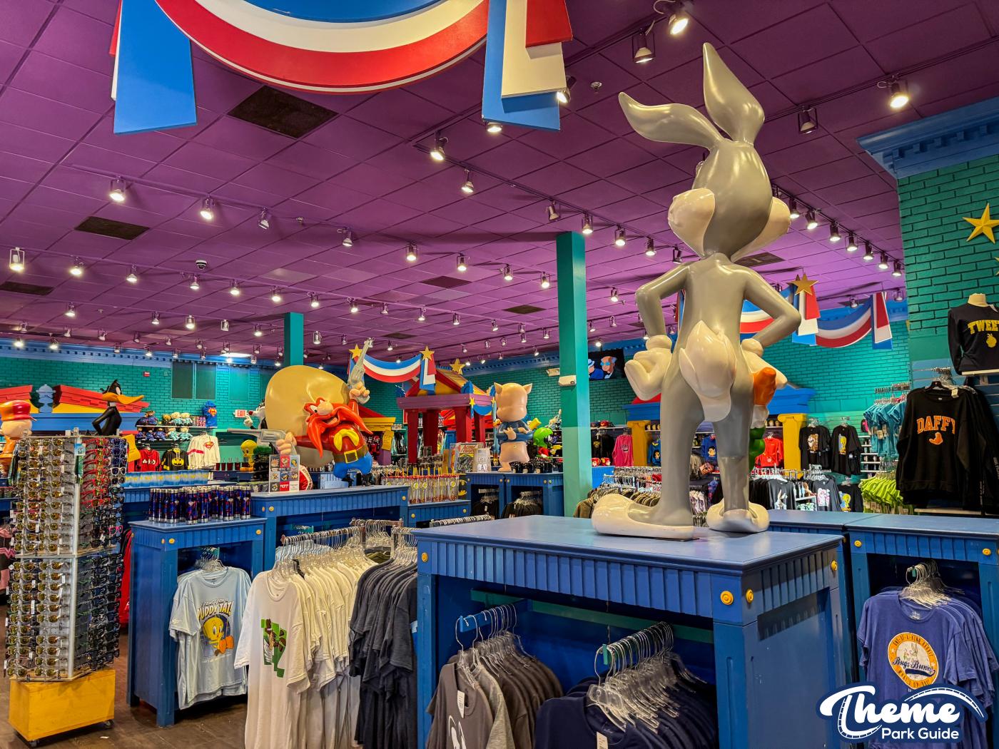 Looney Tunes Emporium functioned as a major themed gift shop rather than a ride, but it was considered an attraction in its own right due to its proximity to Looney Tunes-themed rides and entertainment. The shop featured character merchandise, themed décor, and playful interior designs meant to immerse guests in the cartoon world. It served as a central hub for families, offering plush characters, apparel, and souvenirs tied to classic Warner Bros. cartoons. Its closure symbolized the end of an era for the family-friendly Looney Tunes presence at the park.