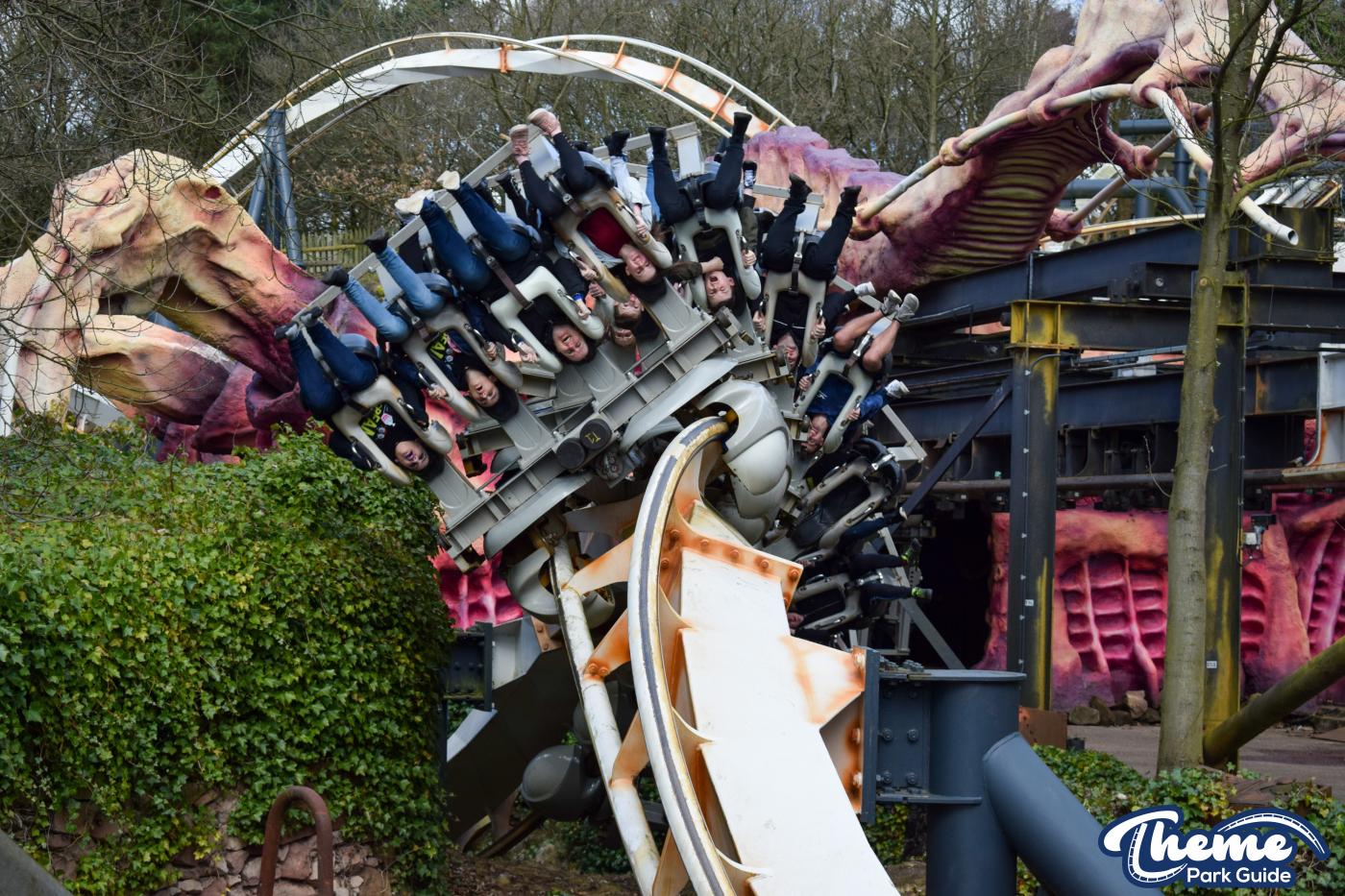 Nemesis is the most intense rollercoaster in the park offering riders that dare approach it a ride from hell and back. The ride is themed around a alien which was disturbed during routine maintenance work which was then pinned down with metal to protect the alton towers resort by the phalanx security team.