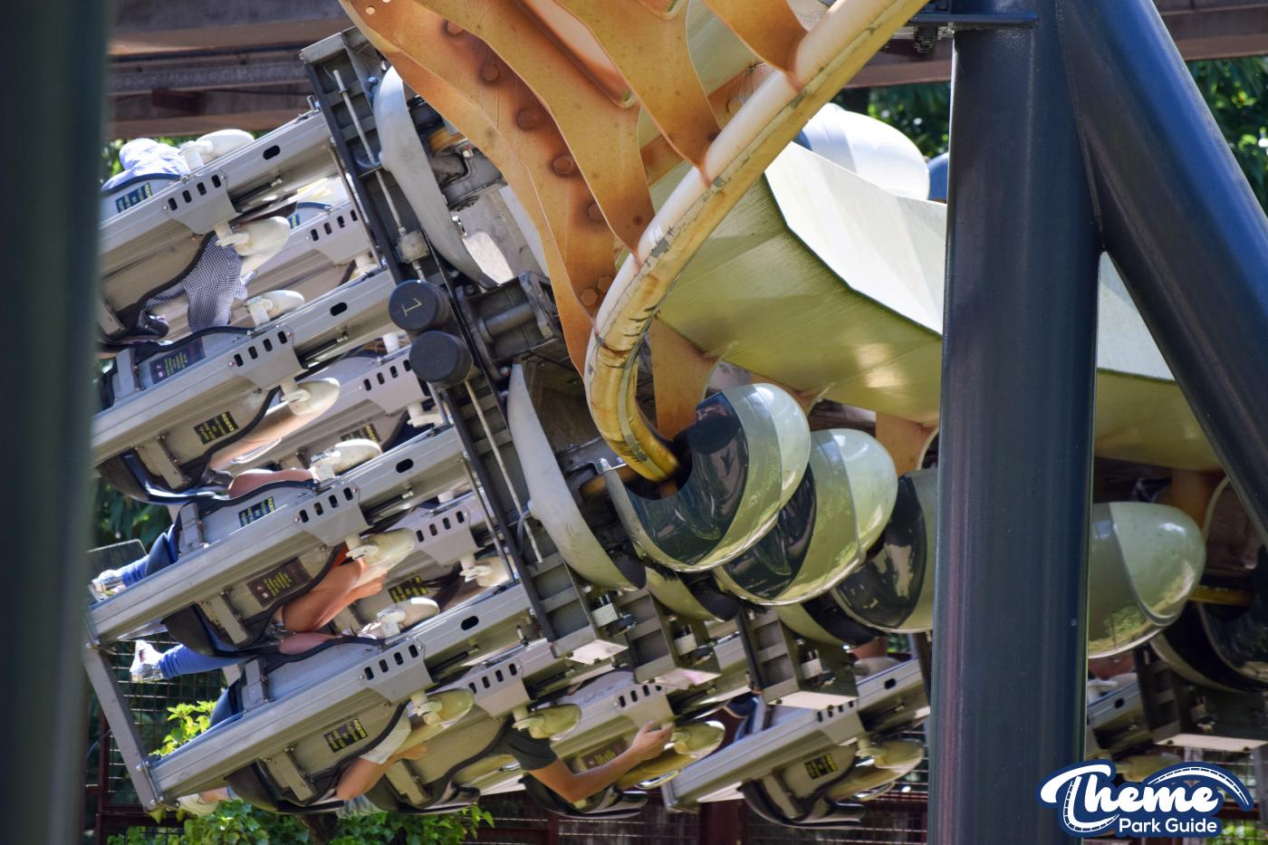 Its the story of the beat which keeps the ride alive and makes the ride experience two times more powerful as you roll over the ride station and experience GeForces of up to 3.5 along with stall turns, barrel rolls and loops along the journey. Due to the rides location most of the ride is low down meaning the first time you properly see it is when join the queue or walk around the plaza.