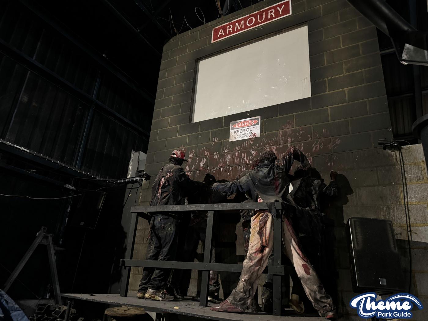 One of the most iconic moments comes at the unload platform, where guests pass through the famous “Don’t Open, Dead Inside” doors—an instantly recognizable feature for fans of the show. This marks the first time guests get to walk through these doors, further enhancing the feeling of stepping into The Walking Dead universe.