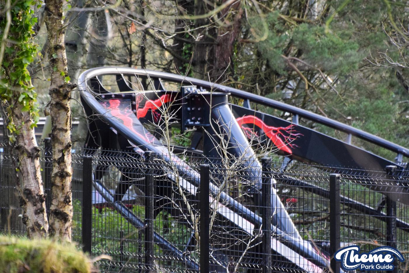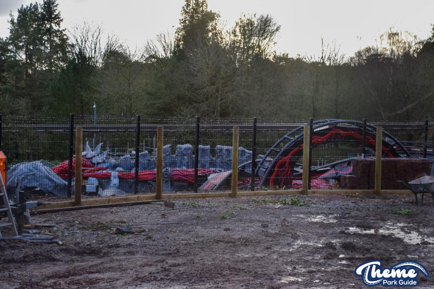 On the first day of the closed season, the final sections of the track were lifted into place. With the pathway into the park needing to be blocked off, it looks like the park was waiting for the closed season to put these final sections in. It would also appear that work on new pathways for the queue line for the rollercoaster has begun. Could the pathway around the whole of the rollercoaster finally be returning?!