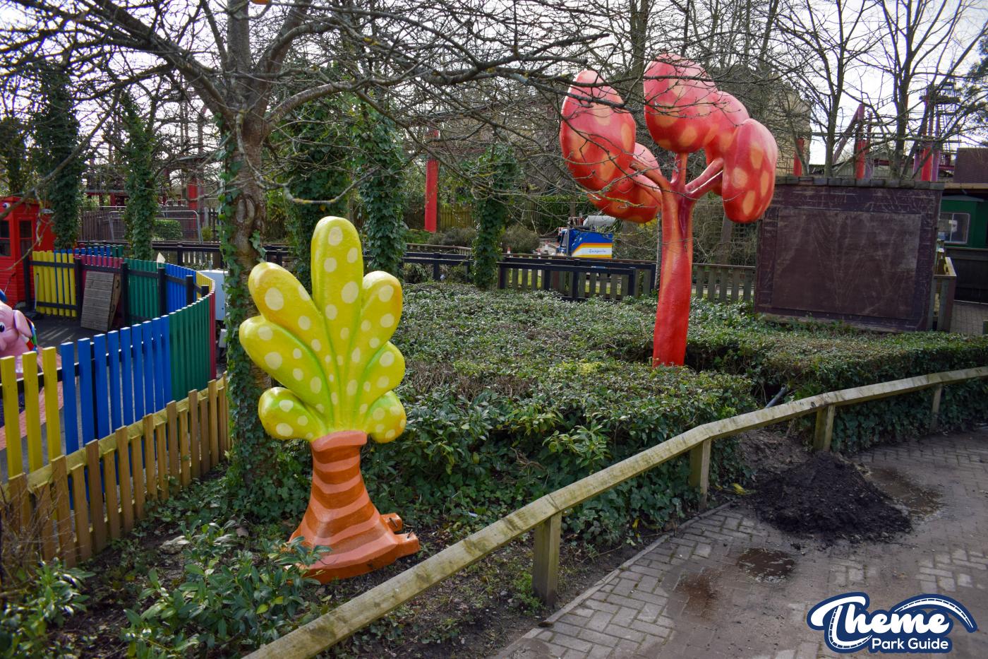 Elmer's Flying Jumbos looks to be progressing nicely, we believe the ride has been testing over the past few days. The operator's booth for the ride has been painted a bright red colour, some theming has been added around the area and speakers have been installed. Push buttons to make the ride go up and down have also been reinstalled for the ride.