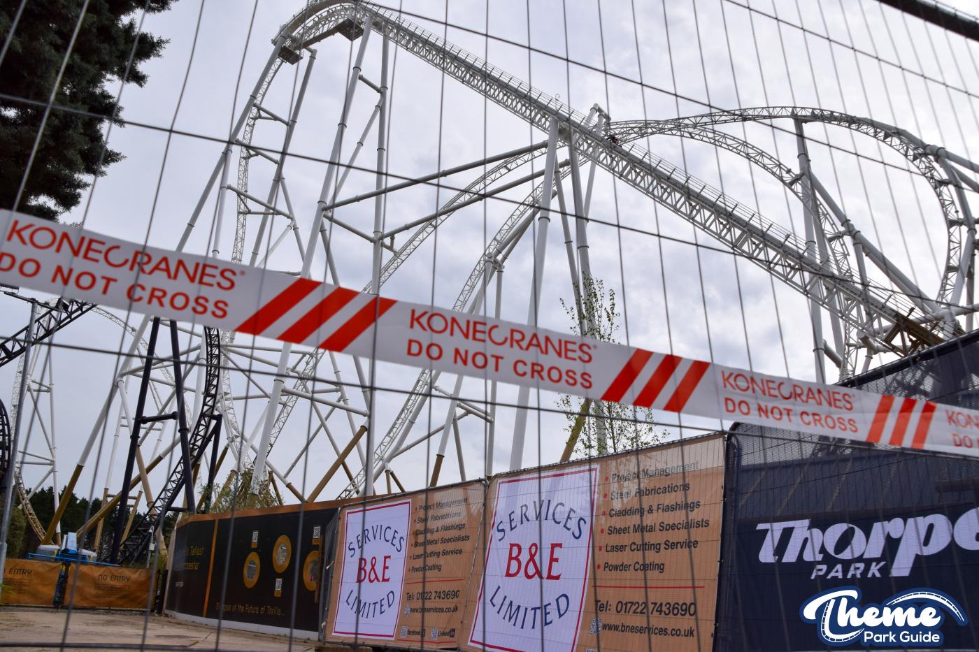 Elsewhere around the site, new permanent banners have been installed on the new temporary fences around the area. These new banners show off the new Thorpe Park logo and the Hyperia concept art. More fence posts have also been installed around the area. Creating the ride area needed to test the rollercoaster very soon.