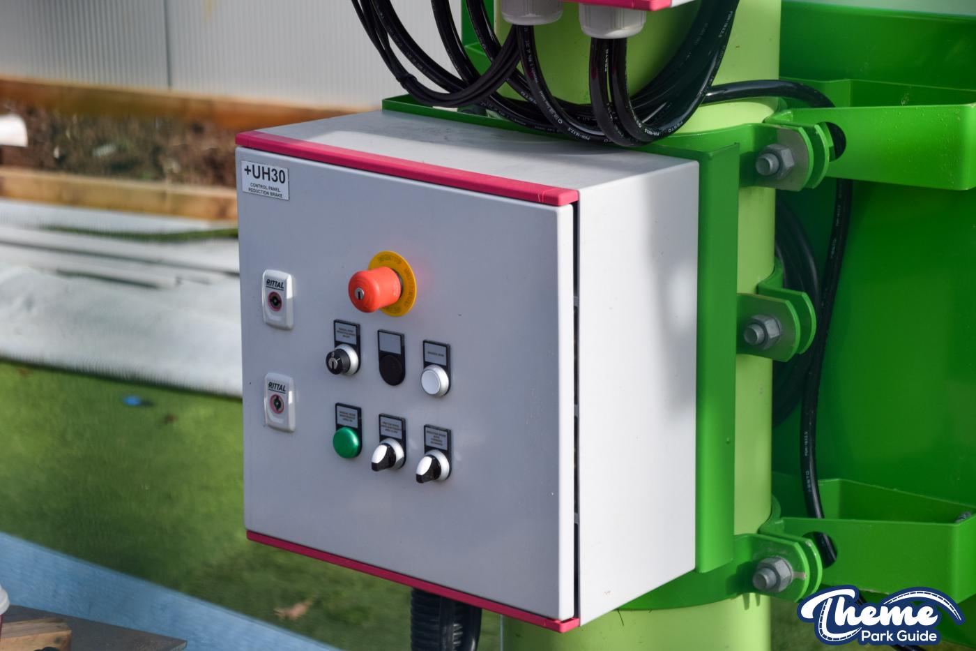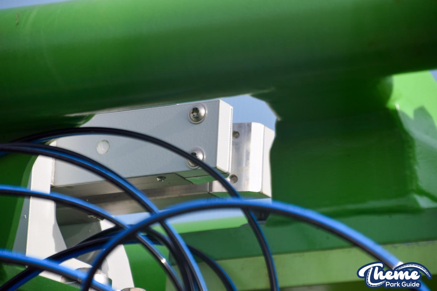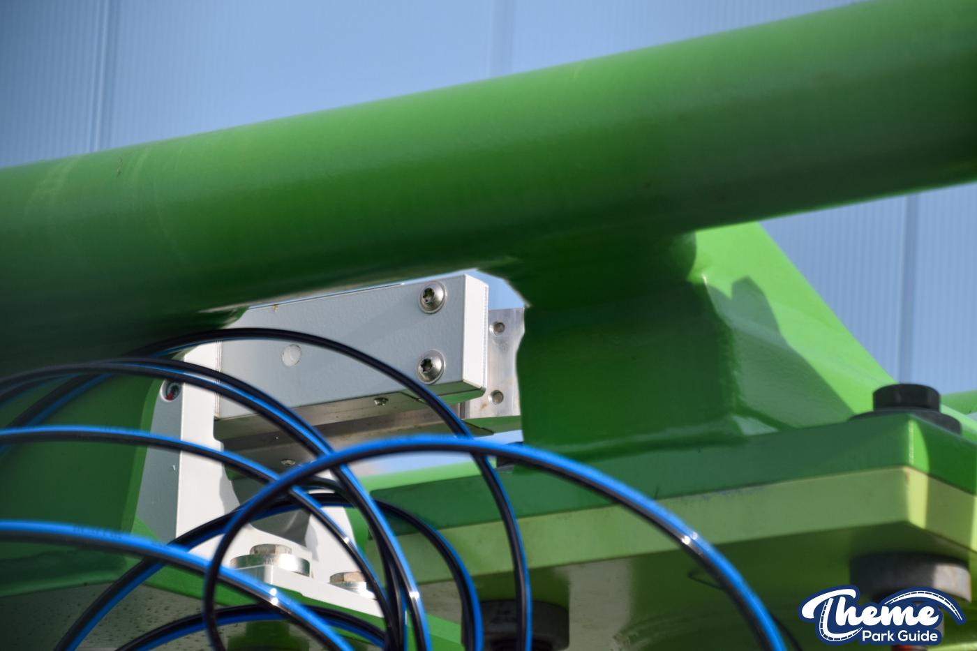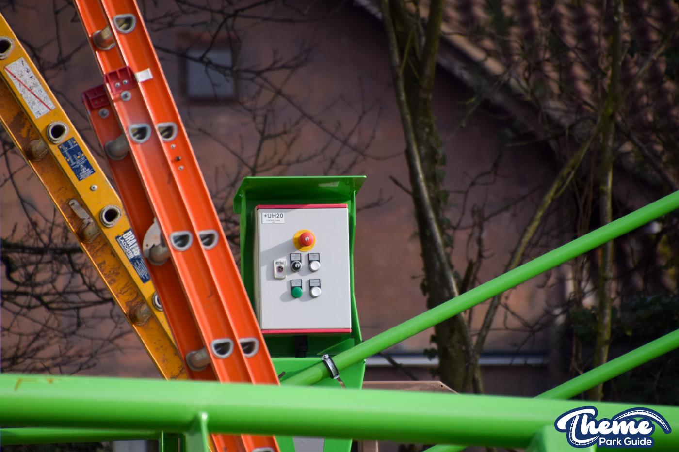 The clearance envelope tester is currently sat to one side, ready to ensure the ride’s clearance envelope is correct and that guests won’t be able to reach or touch anything during the experience. Meanwhile, two freshly prepared foundation points suggest that additional theming elements are still to come — and we can’t help but wonder what might soon be installed there.