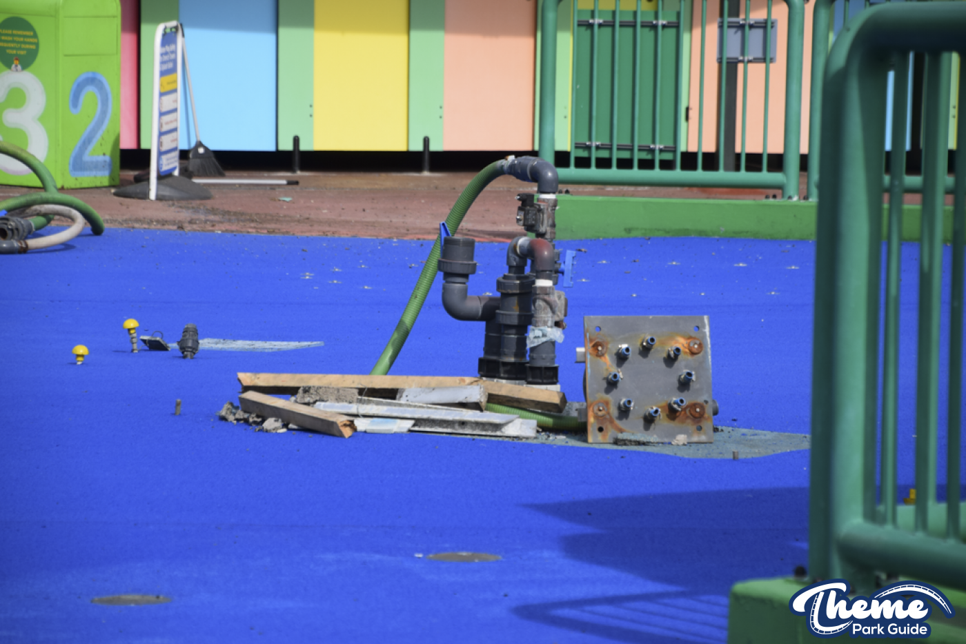 Drench Towers at LEGOLAND Windsor is undergoing major work ahead of its reopening for the 2026 summer season. All of the models in the lower section of the water splash pad have been removed, and it looks like a new floor has been installed.