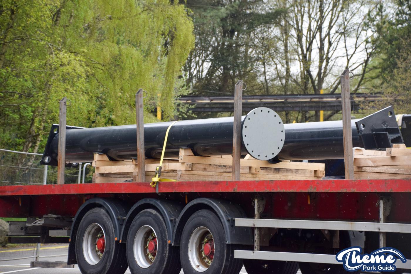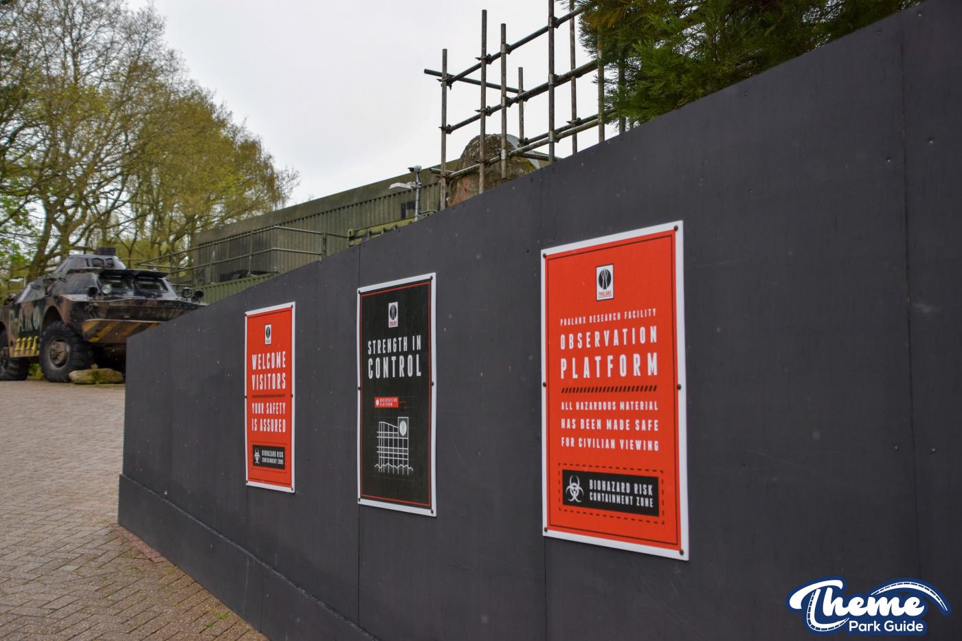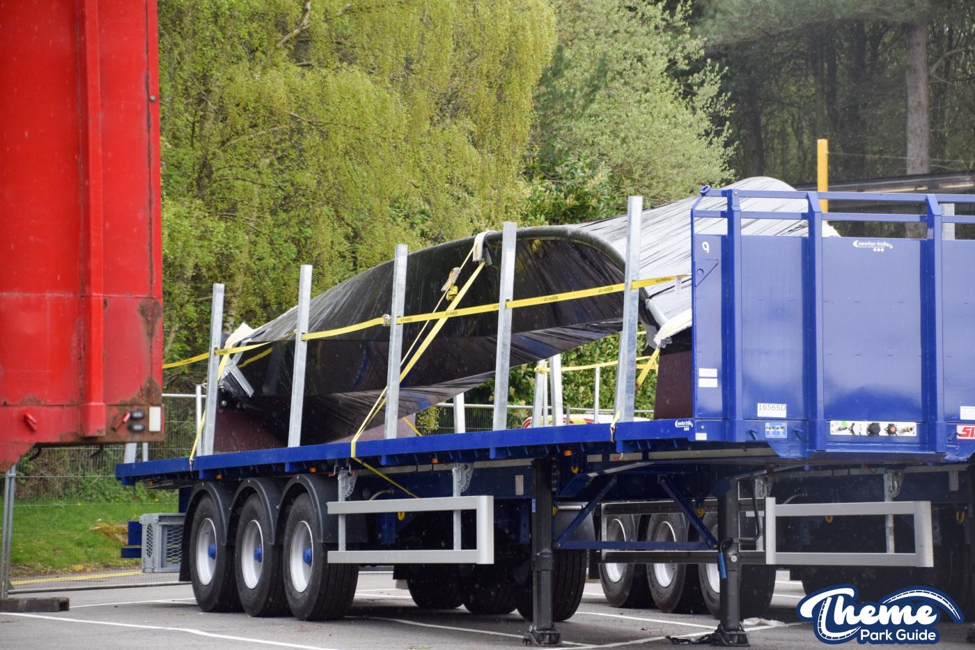 Trucks continue to arrive at Alton Towers with more sections of Nemesis track and supports. Being delivered by the Phalanx the trucks are being stored in the car park by Air. Closely guarded these trucks are shrouded by fences so no one can disturb the Nemesis experiments going on by Phalanx.