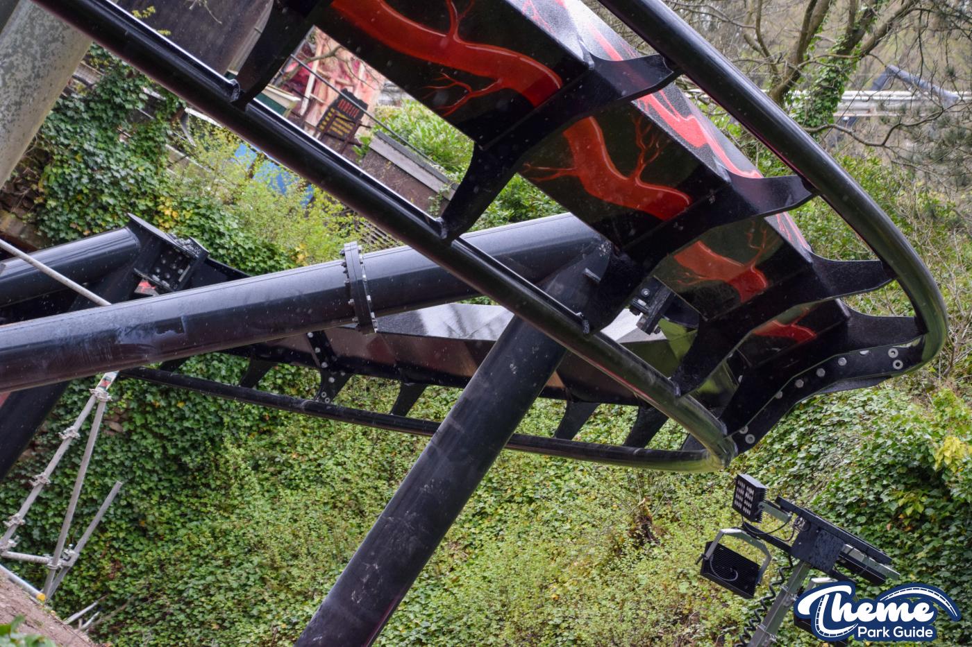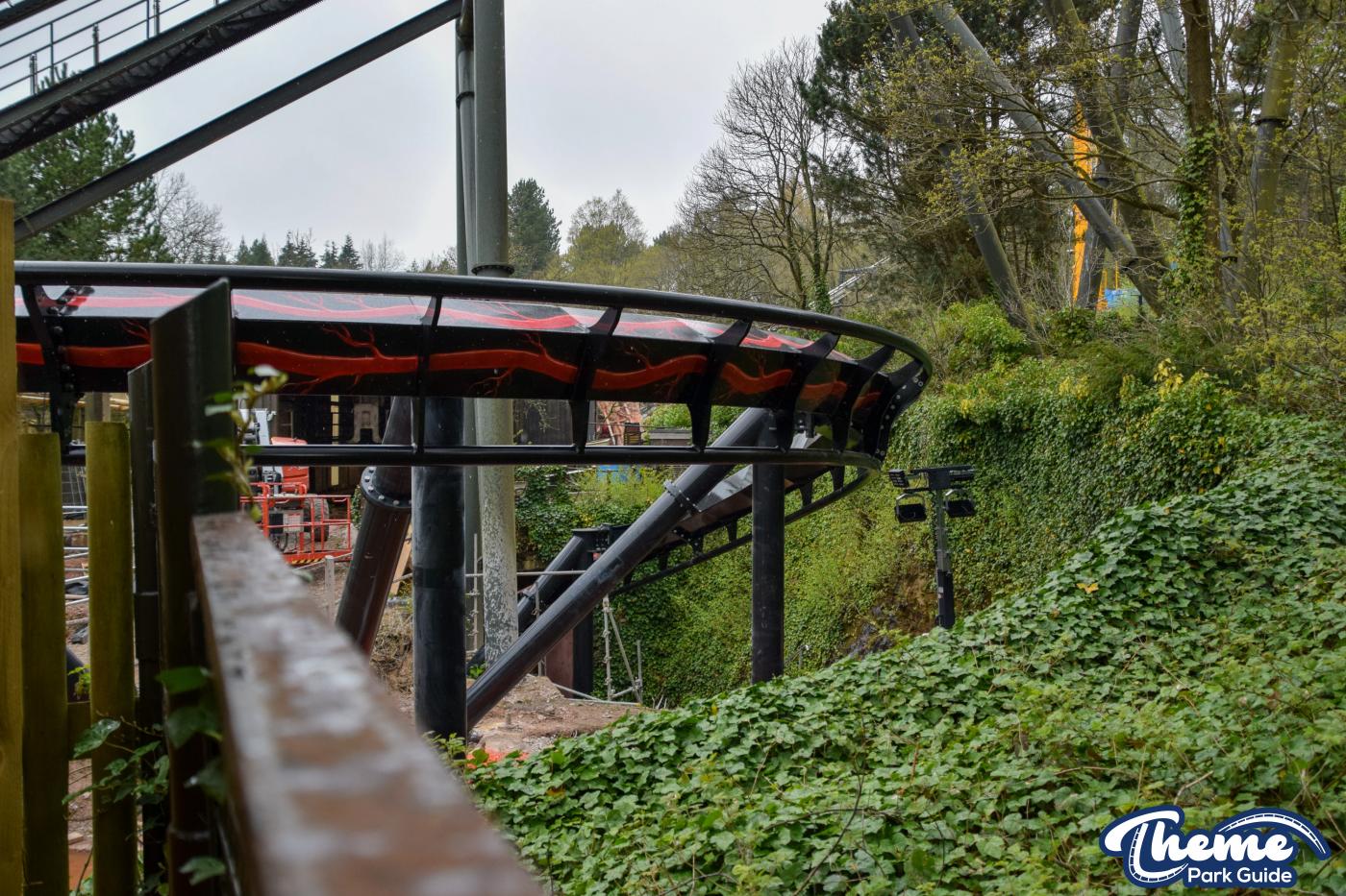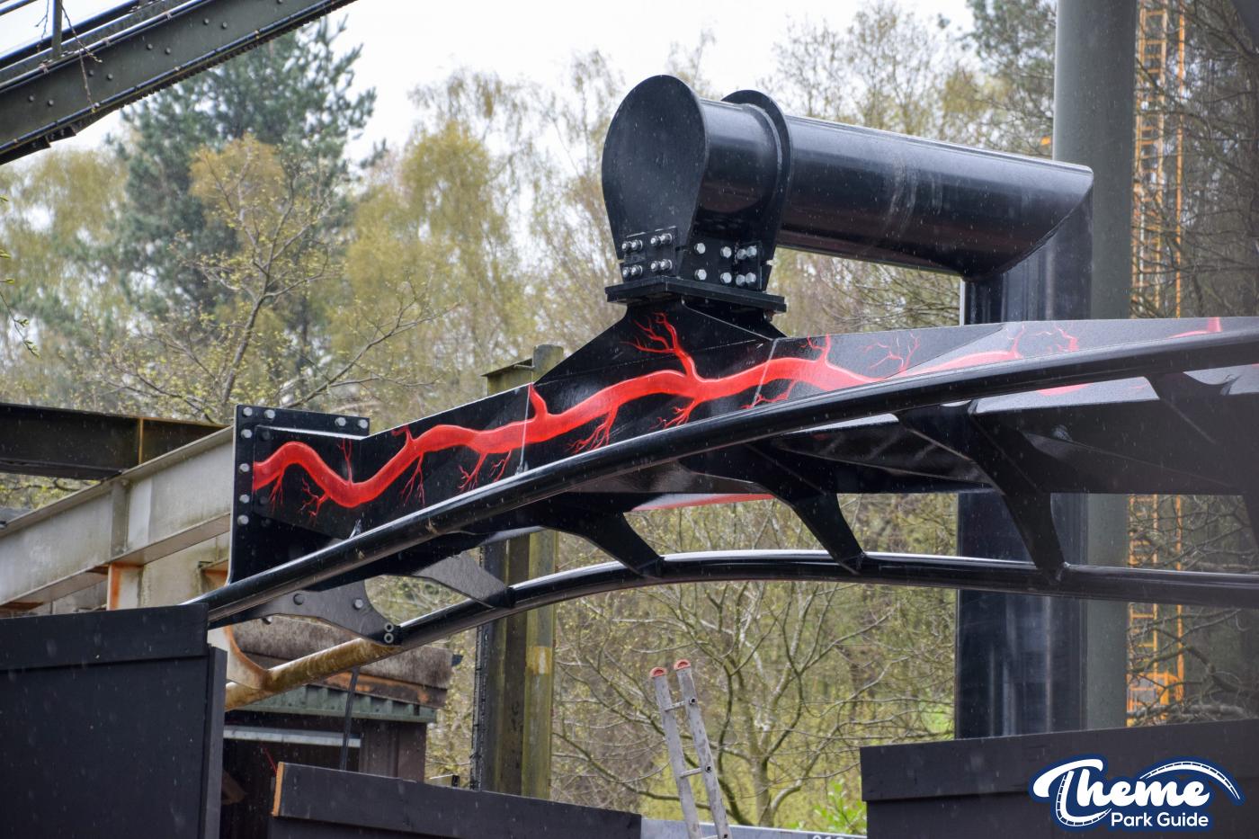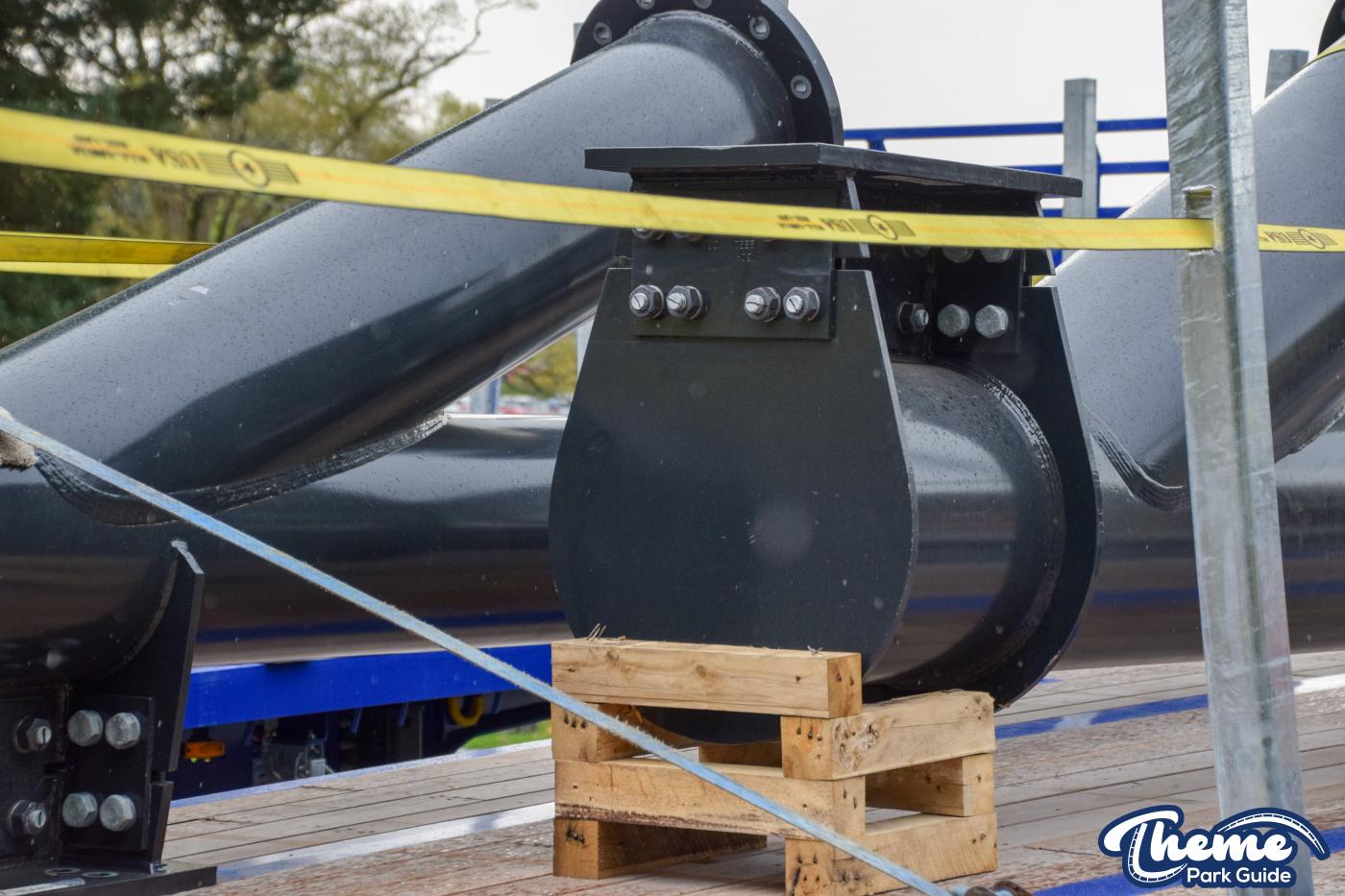Since our last look at the first section of the track being installed more sections have been installed going into the tunnel. And work on the final inversion has started, supports have been installed and bits of track for the inversion can be spotted on the truck and placed around the area ready to be installed during closed hours. Due to the location of these bits of track, everything is being done outside of theme park hours due to site access and track being lifted over the monorail and close to other ride areas.