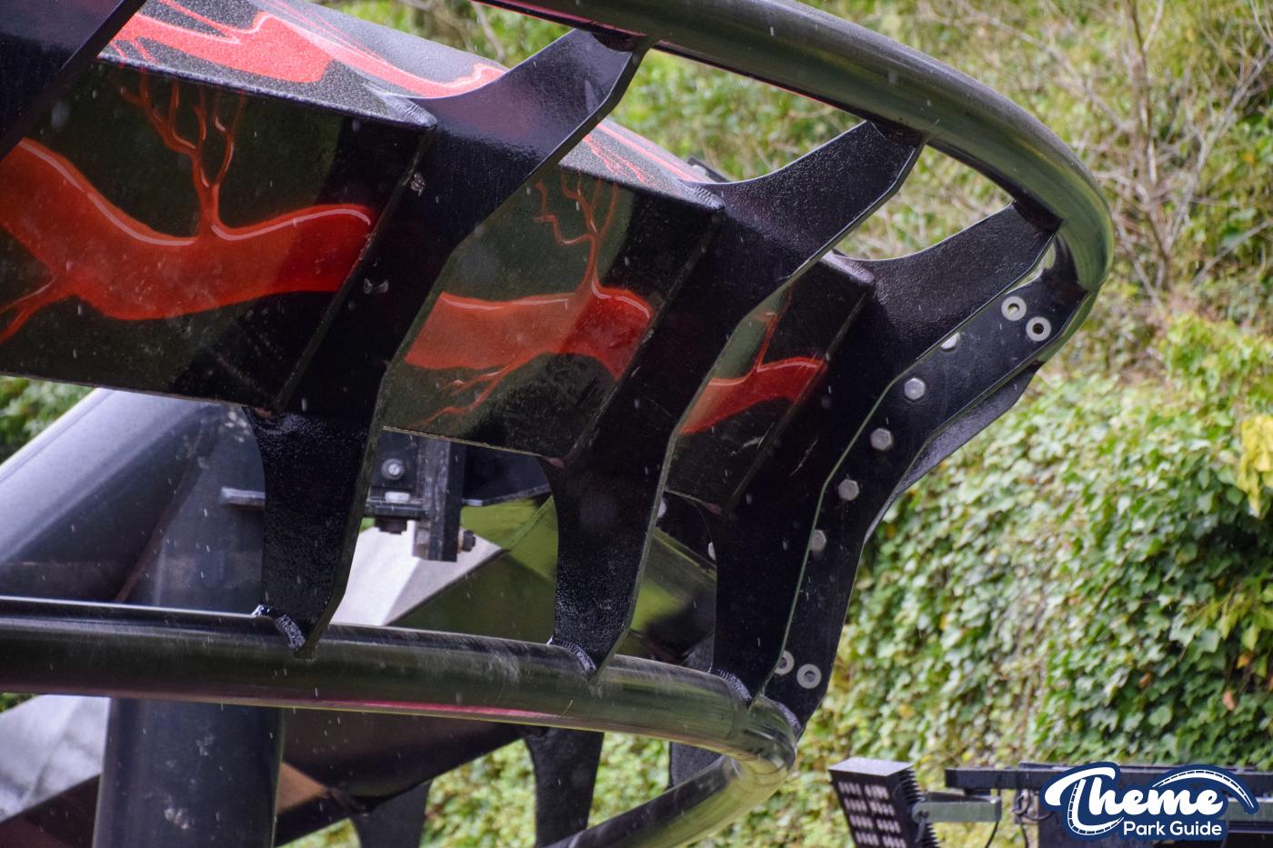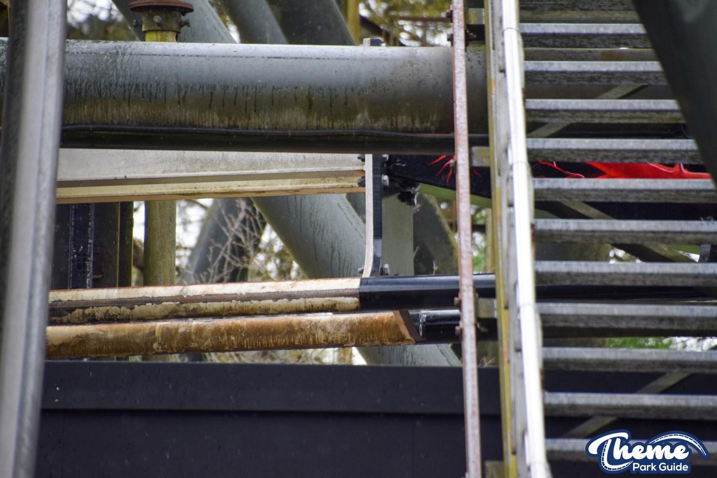 It's amazing to see old and new Nemesis tracks bolted together. We cant wait to see what the park does to blend in the new and old track. The custom-painted sections of the track look amazing in person and the photos just don't do it justice.