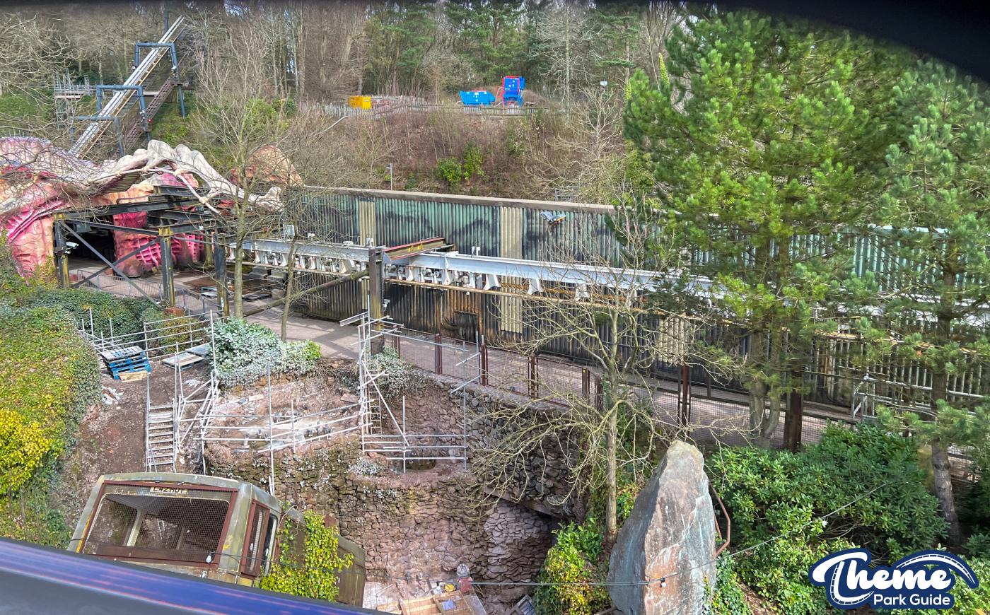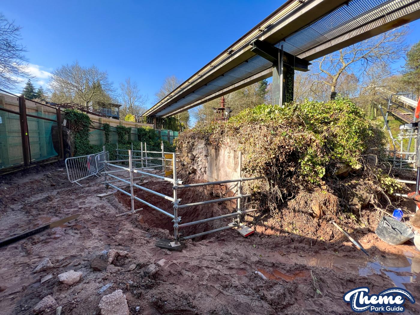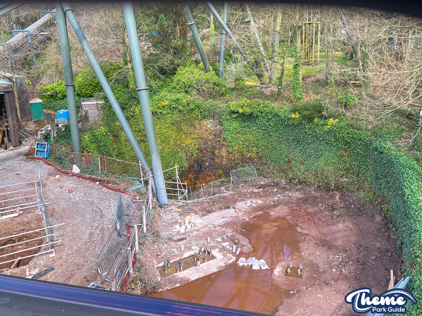 Work on rebuilding the foundations for Nemesis at Alton Towers is well underway. Riding the monorail into the park in the morning yesterday it was a weird sight not seeing the track wrapping around the pit and area. But you get an amazing view of the progress being made in the area.