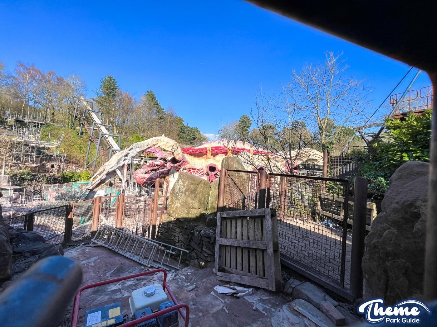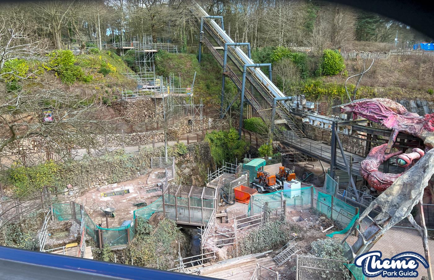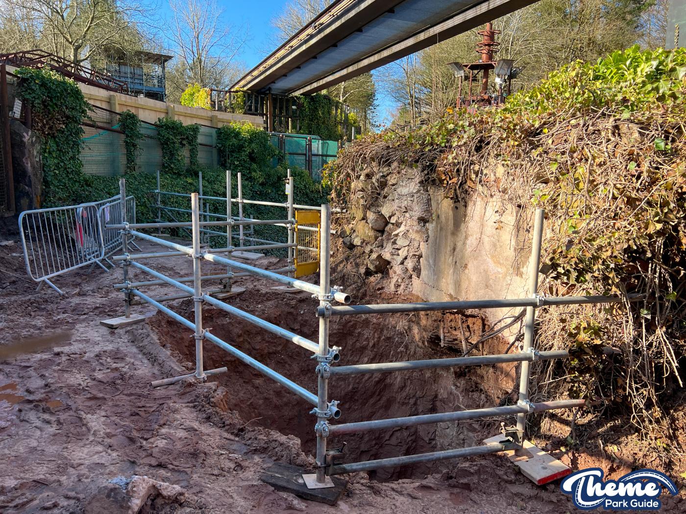 Work on rebuilding the foundations for Nemesis at Alton Towers is well underway. Riding the monorail into the park in the morning yesterday it was a weird sight not seeing the track wrapping around the pit and area. But you get an amazing view of the progress being made in the area.