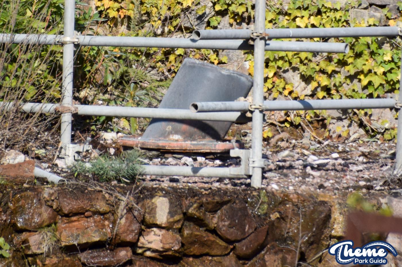 Towards the top of the ride after the list hill, some of the basses of the supports are still visible. You can see where the removal company laser cut the base of the support to get the track out as quickly as they could. From riding air and looking around the area, it looks like these are the last two original support left to be fully removed.