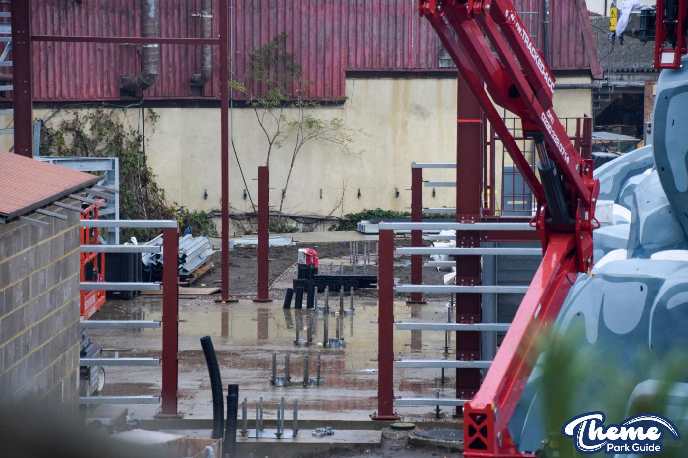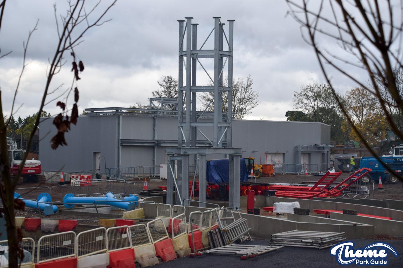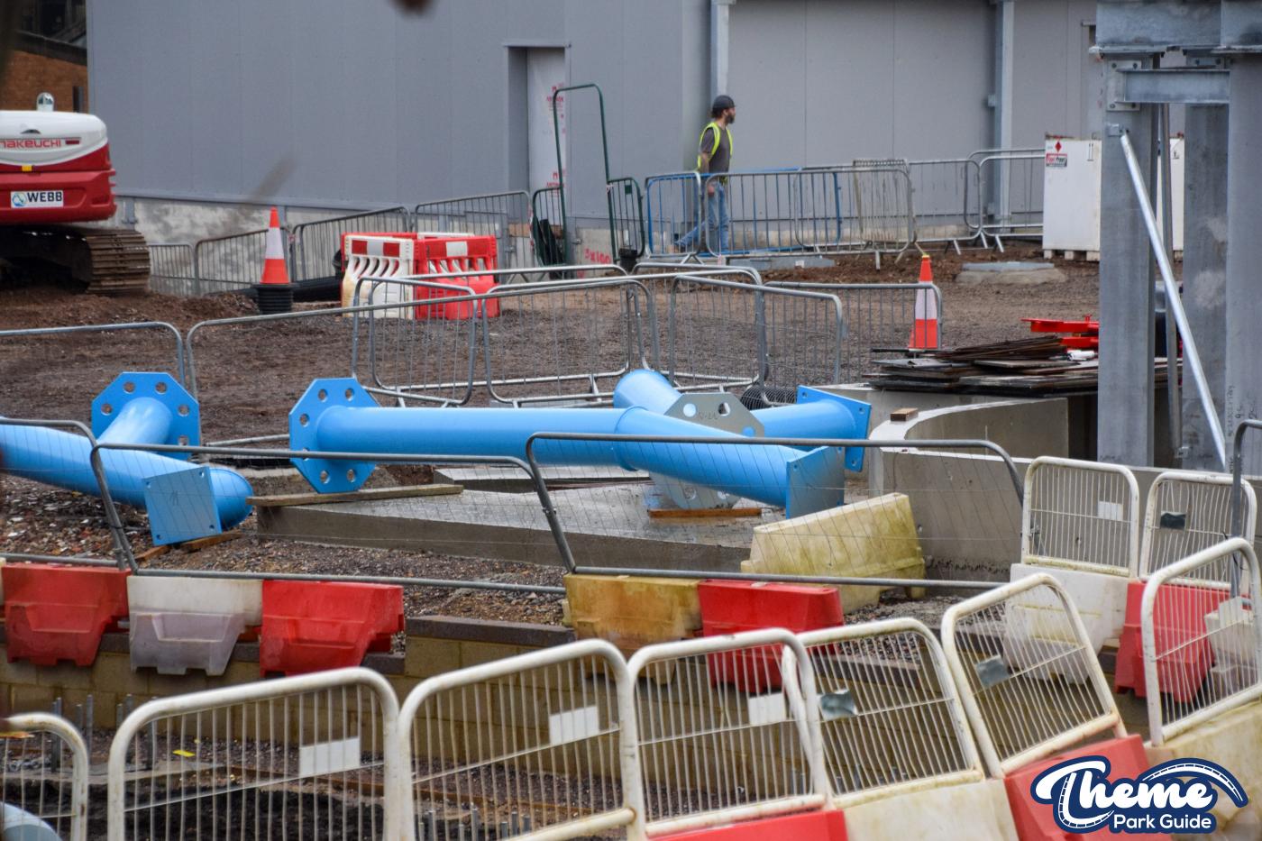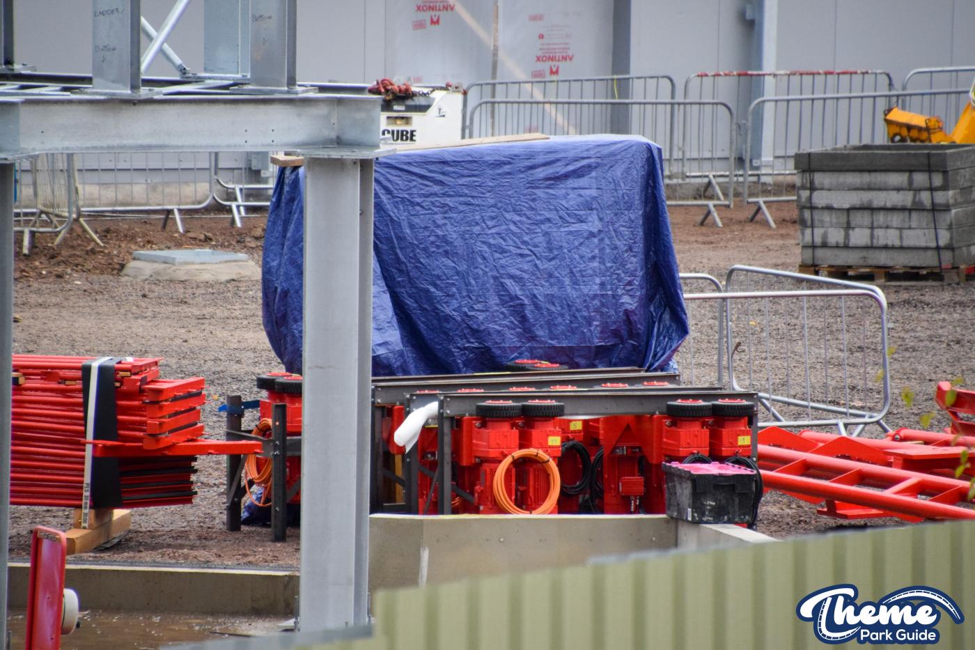 In the centre of the site, a brand-new metal structure has also been installed — this will form the base for the tower theming element, which is already shaping up to be a standout feature of the area. Once complete, this whole new land is set to look absolutely incredible.