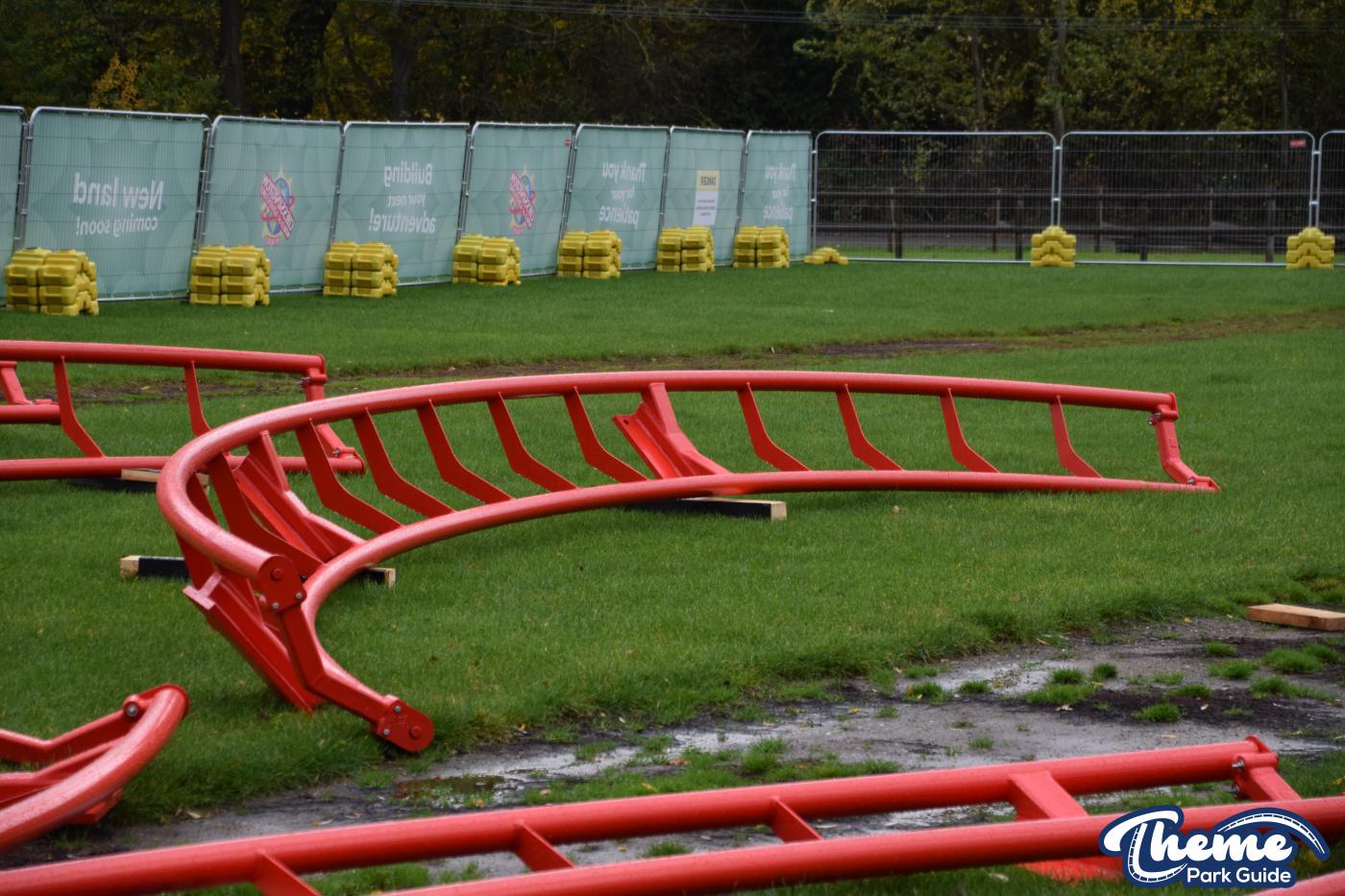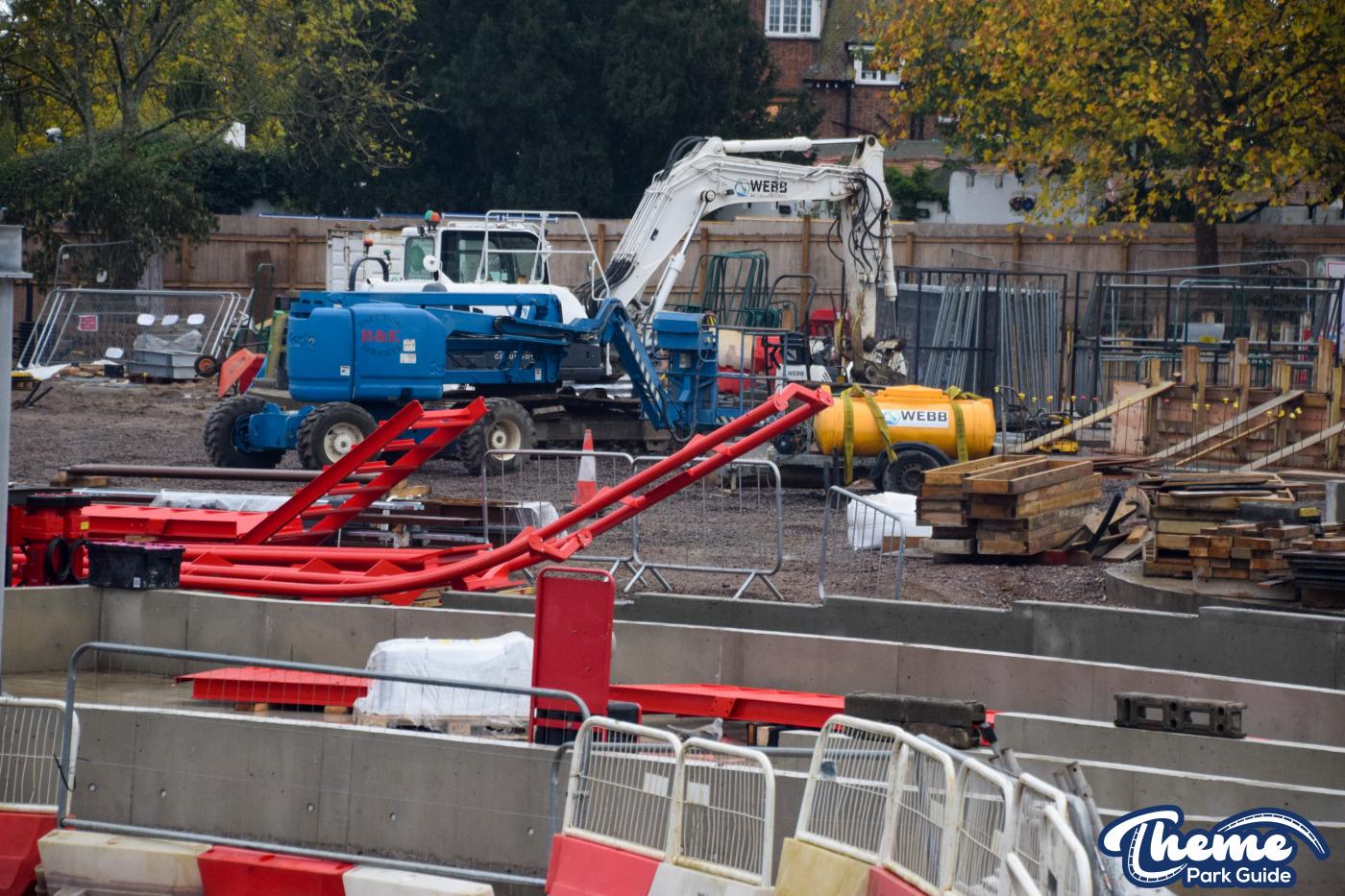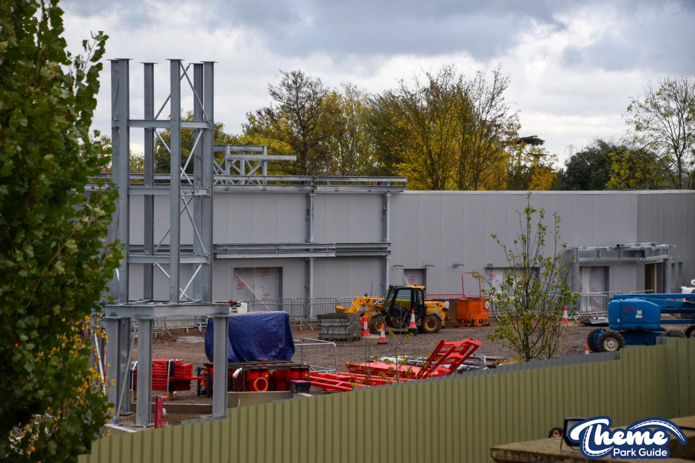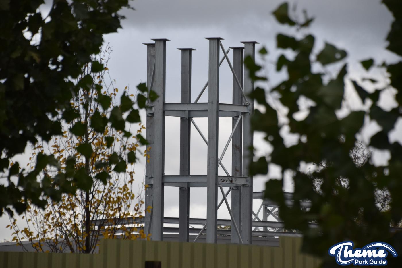 In the centre of the site, a brand-new metal structure has also been installed — this will form the base for the tower theming element, which is already shaping up to be a standout feature of the area. Once complete, this whole new land is set to look absolutely incredible.