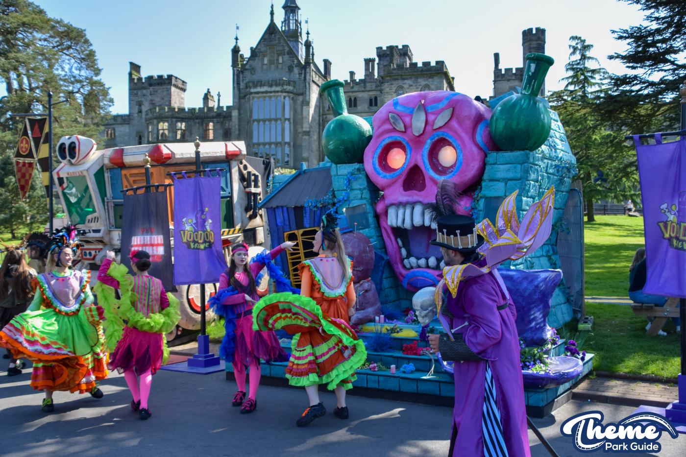 One of the key highlights of Mardi Gras at Alton Towers has always been the themed Krewes and their performances. This year, the park introduced a new layout, relocating the Krewes to more centralized areas. The intention behind this change was clear—make it easier for visitors to experience all the different elements of the event without having to trek across the expansive park. The Krewes, each representing different themed zones, still brought their colorful costumes, lively dances, and infectious energy to the event.