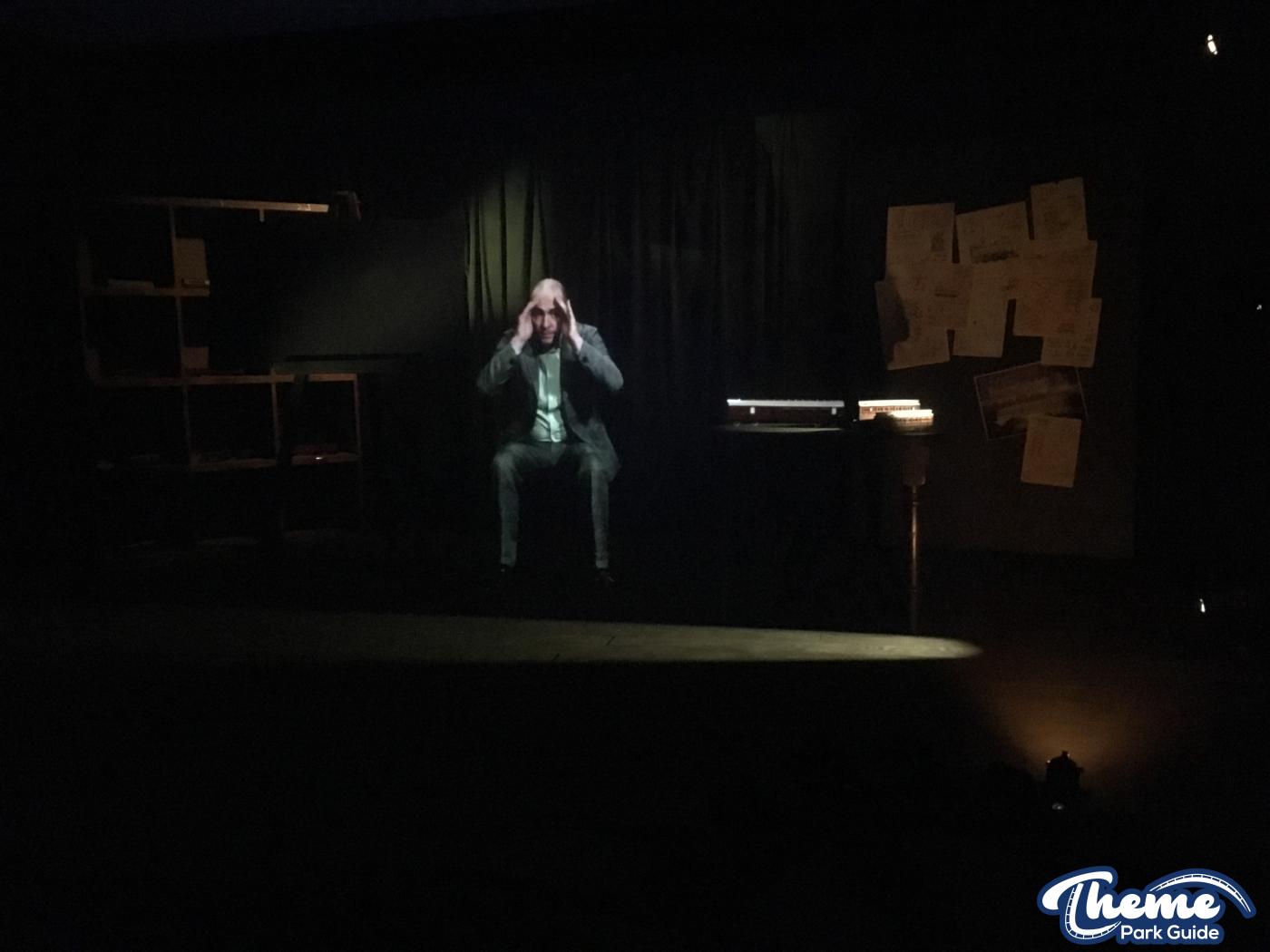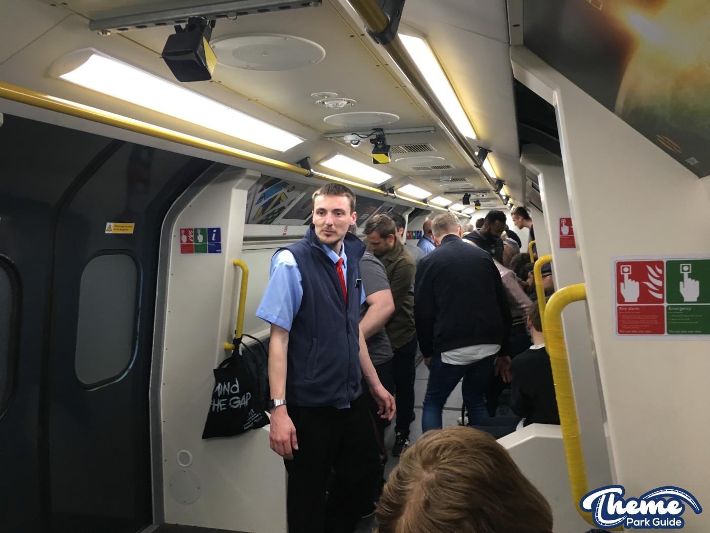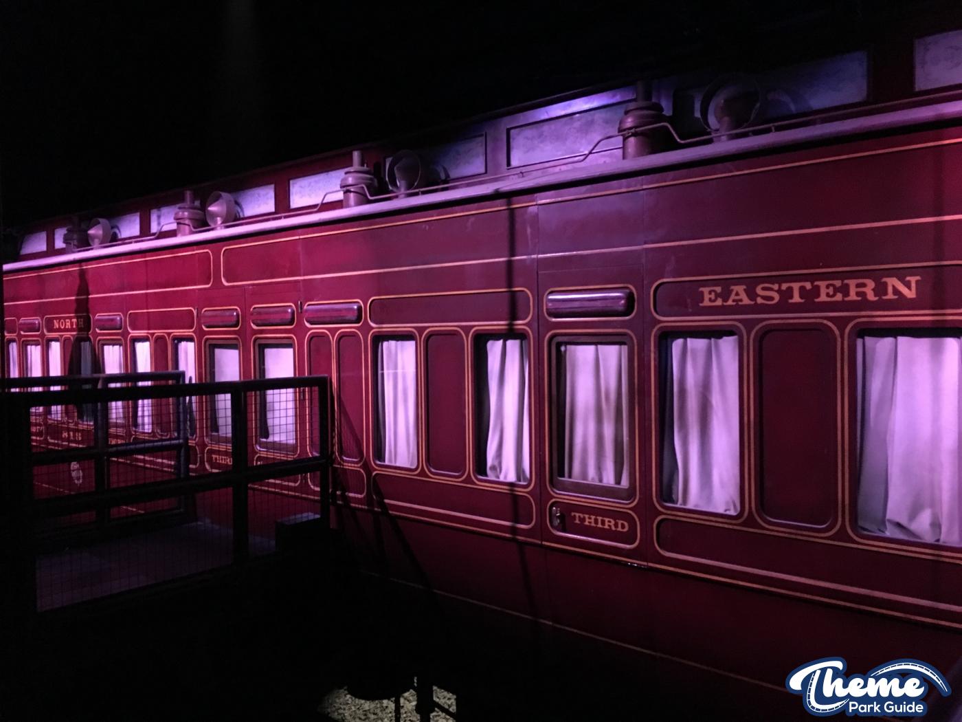 The new extended front of the ride where the baggage hold used to be is simply just two new batching areas. After the second photo point your batched into a group of 58 or 56. Waiting behind the door until your called you then watch the same pre-show from last year. Although it would have been nice to have a new pre-show the old one still does the trick and makes guests jump out of their skin when the bulb smashes. After the pre-show you walk up to the top of the stairs but rather than walking straight onto the gantry’s you now have to wait for a “train conductor” to come and greet you. There’s a good chance you might get a speech. Two out of the three times we did the ride on the press night we had a speech about how the train is suspended by nothing more than chains. A nice touch would be if the park pre-recorded this and played it whilst you were waiting.