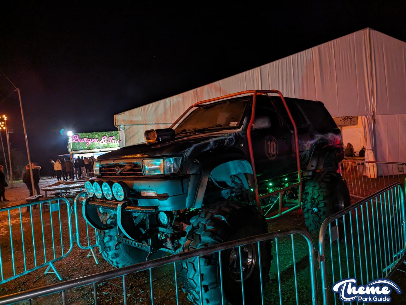 Less infrastructural and more thematic, a large monster truck is parked in the hub which provides a jump scare as its horn periodical beeps, and in the distance towards The Village scare maze, you may see some glaring red eyes watching you in the distance, which all builds a fantastic atmosphere within the area.