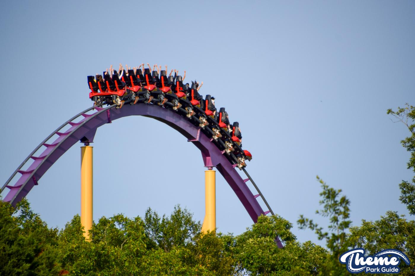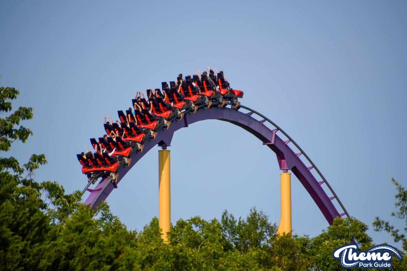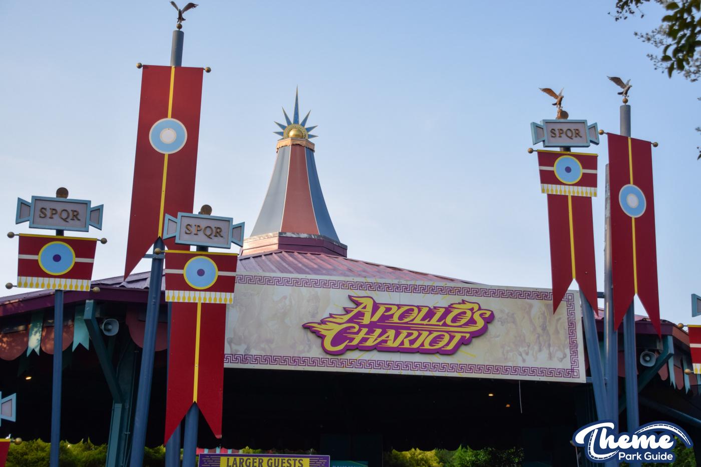 Apollo’s Chariot is a highly regarded hyper coaster celebrated for its smooth, fast layout and abundant airtime hills. It features a tall lift hill followed by a long, sweeping first drop that dives into the terrain, creating a dramatic sensation of floating. Riders experience multiple elevated camelback hills, large curves, and graceful pacing designed to emphasize speed and airtime rather than inversions. Since its debut, it has been considered one of the park’s flagship rides due to its elegant design and enduring popularity.