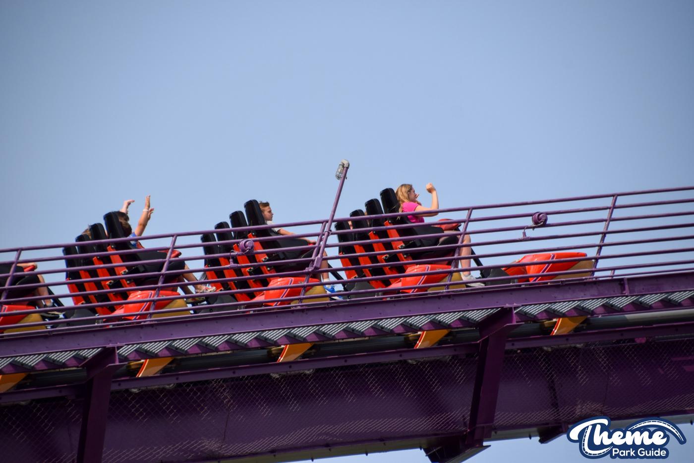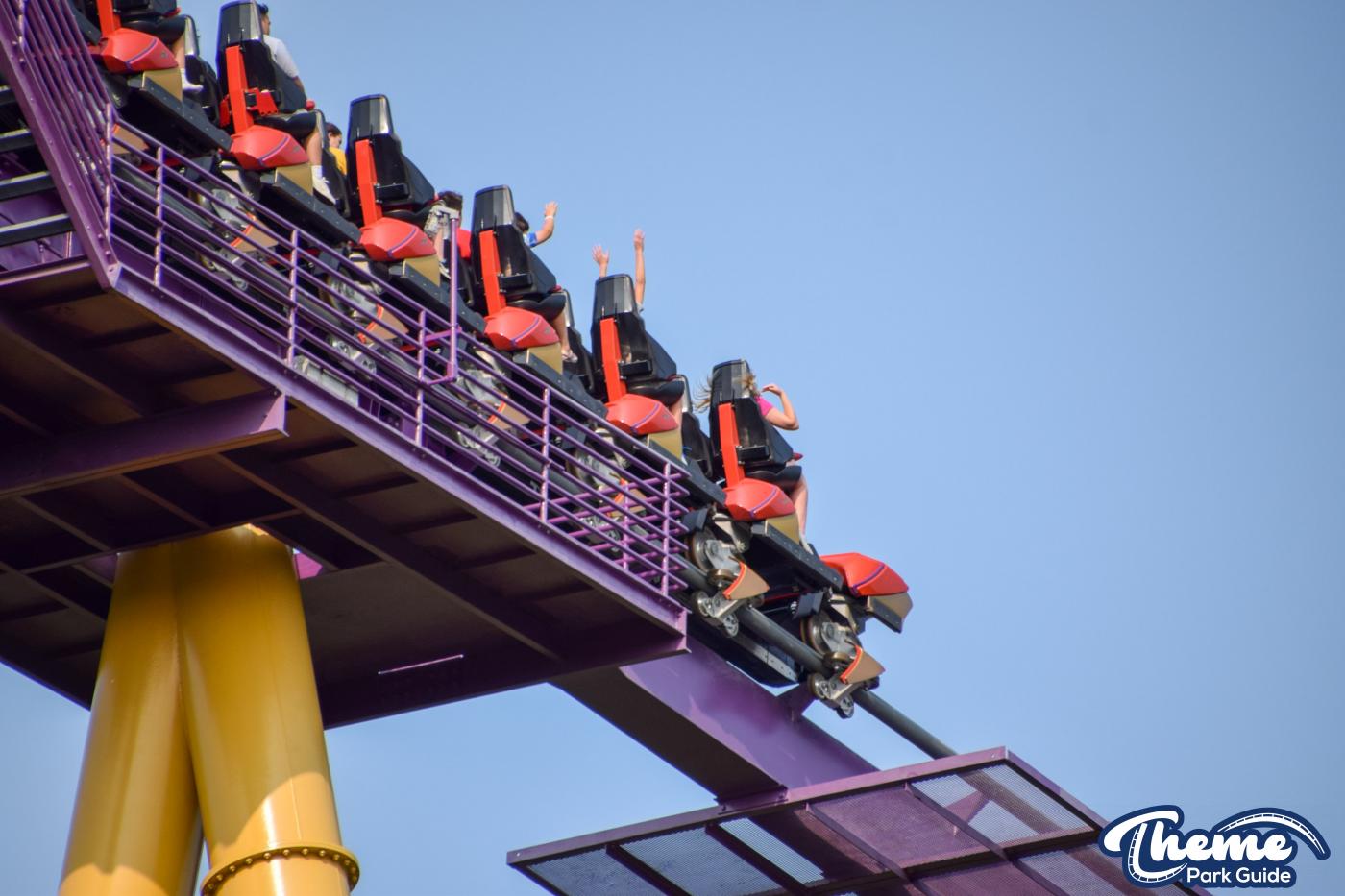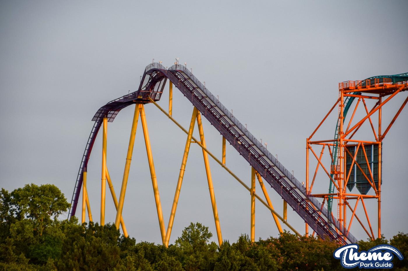 Apollo’s Chariot is a highly regarded hyper coaster celebrated for its smooth, fast layout and abundant airtime hills. It features a tall lift hill followed by a long, sweeping first drop that dives into the terrain, creating a dramatic sensation of floating. Riders experience multiple elevated camelback hills, large curves, and graceful pacing designed to emphasize speed and airtime rather than inversions. Since its debut, it has been considered one of the park’s flagship rides due to its elegant design and enduring popularity.