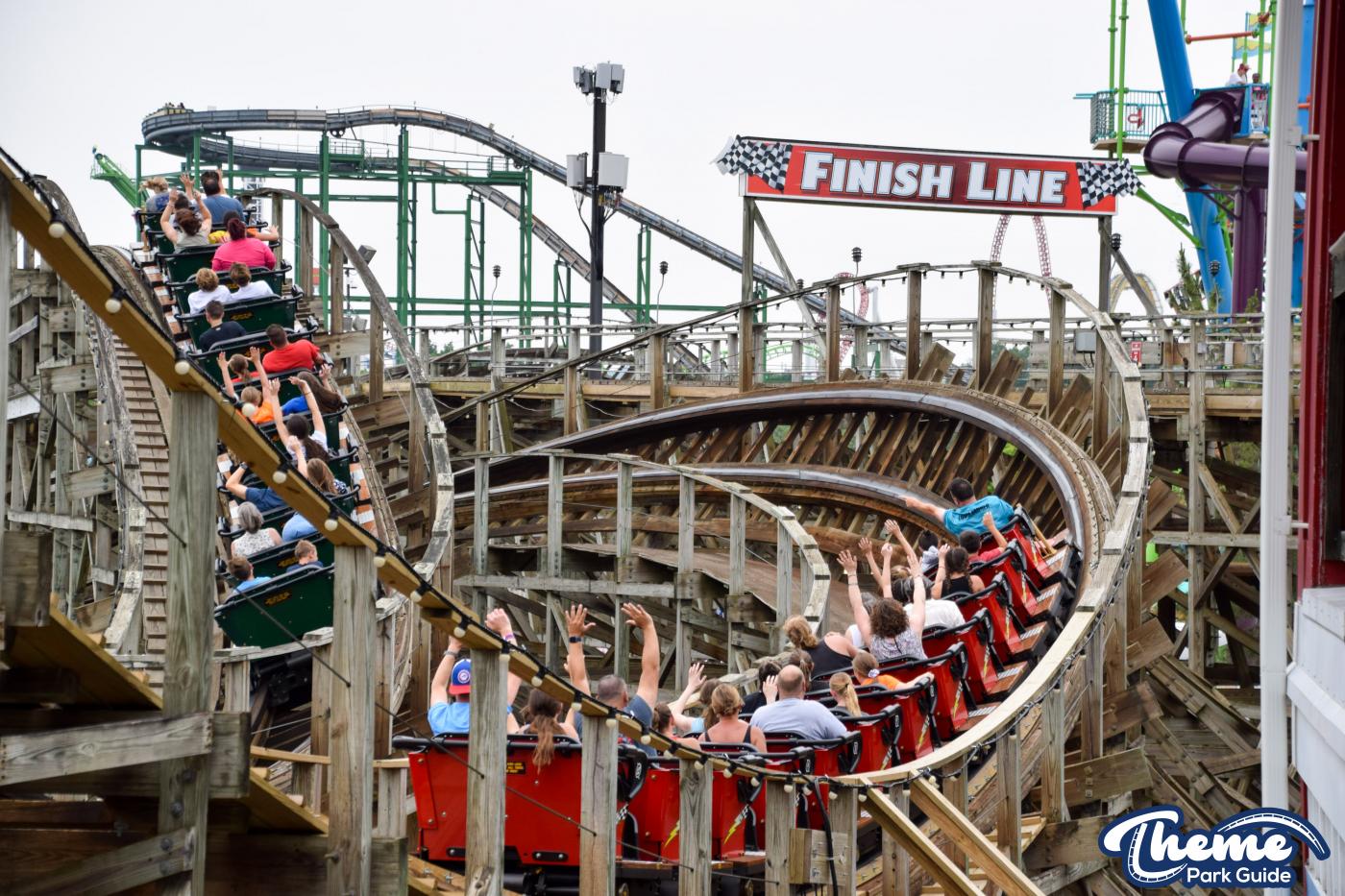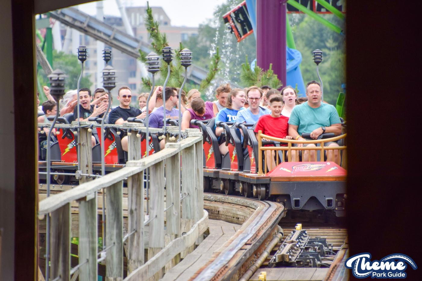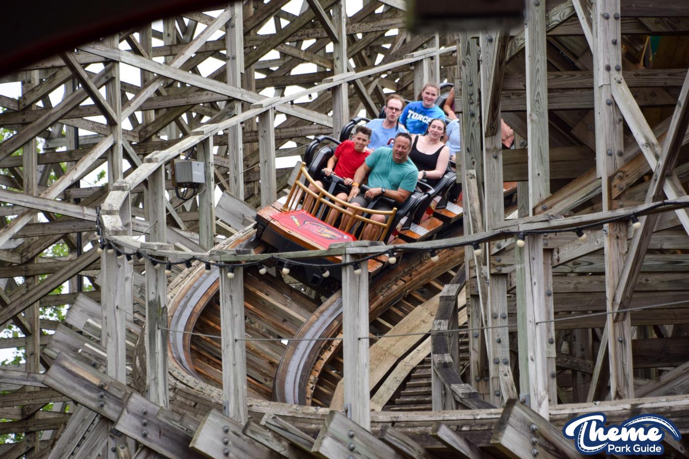 Lightning Racer is a dueling wooden roller coaster with two tracks called Thunder and Lightning. The ride is designed to race both trains side by side, creating a competitive and exciting experience. It features multiple airtime hills, fast turns, and smooth transitions for a wooden coaster. Riders often enjoy trying both sides to see which track feels faster or more intense. The coaster is especially popular during busy days when both tracks are running together. Lightning Racer is considered one of the best wooden coasters at Hersheypark.