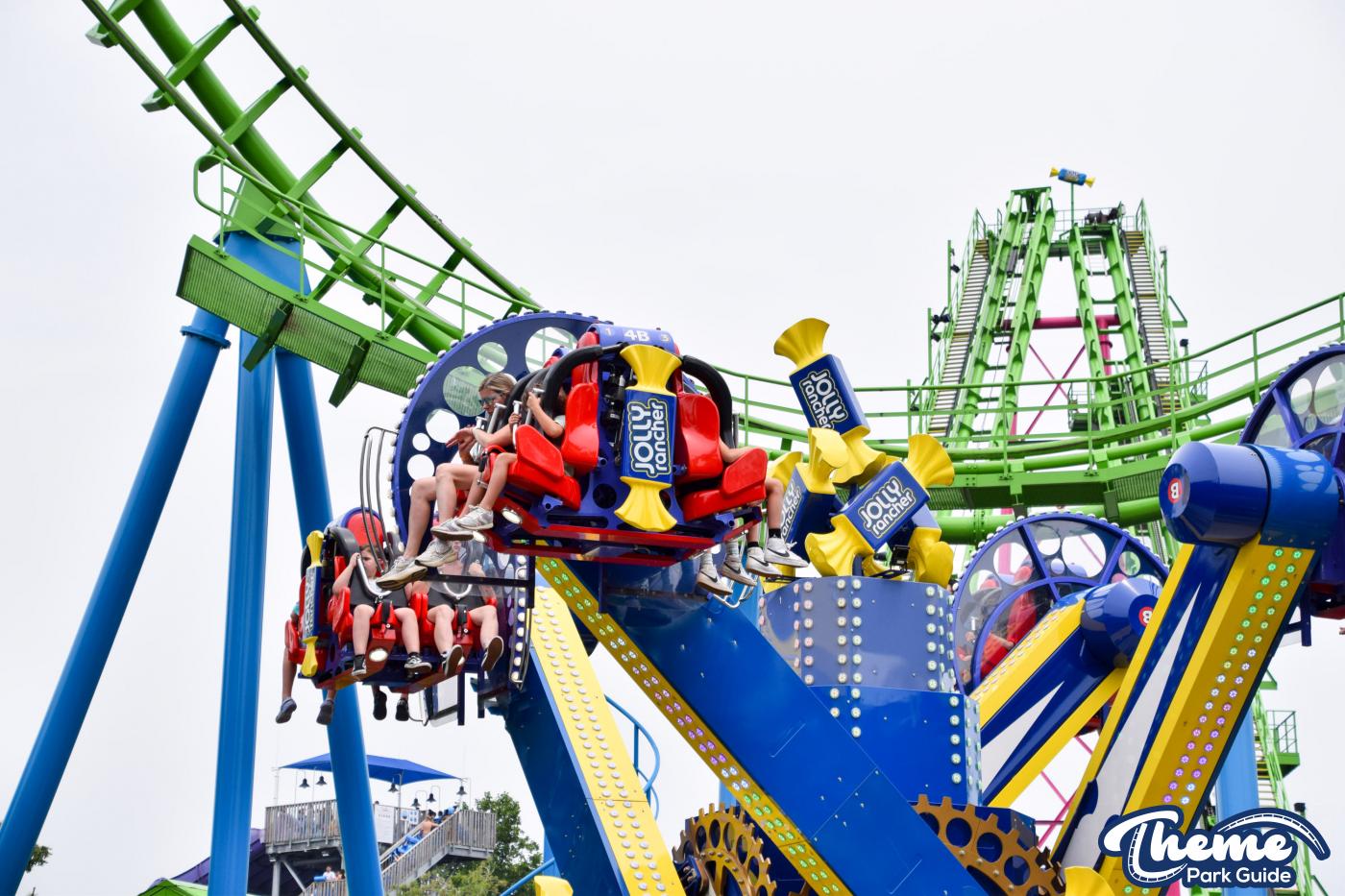 Mix’d is a flat ride that lifts riders into the air while spinning them at different speeds. The ride uses bright lighting, music, and candy-themed visuals to create an energetic experience. Riders feel a mix of spinning and lifting sensations, which can feel intense without being extreme. The motion changes throughout the ride, keeping it exciting and unpredictable. Mix’d is suitable for teens and adults who enjoy thrill rides but not roller coasters. Its bold design makes it easy to spot in the park.