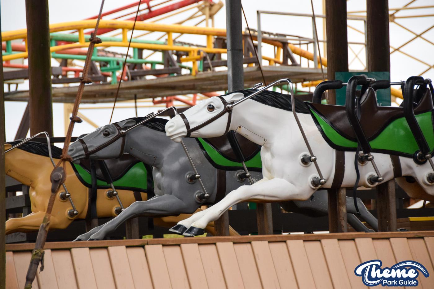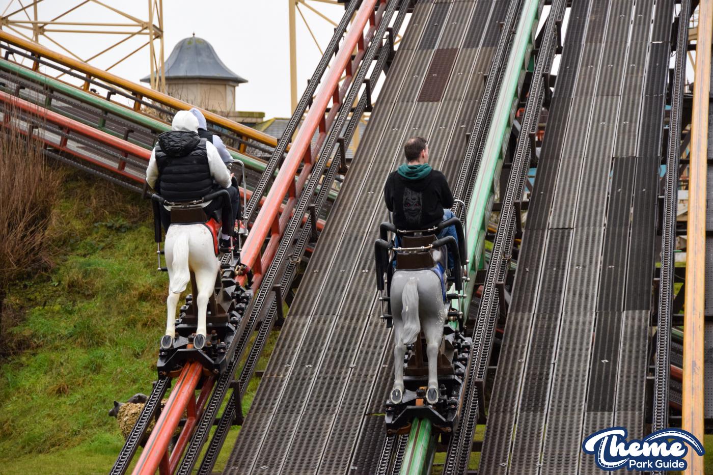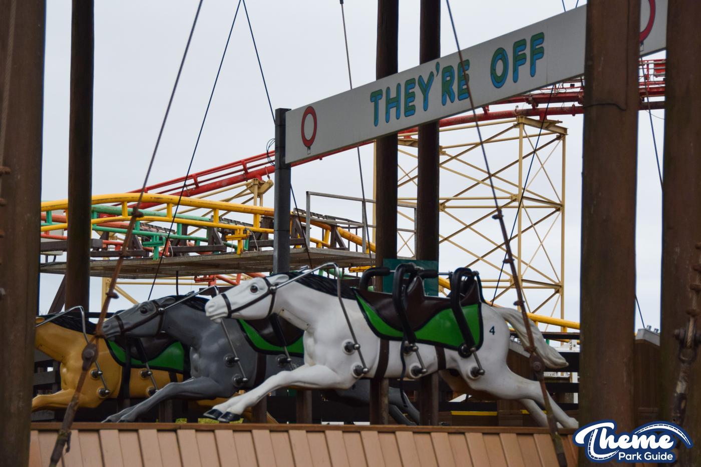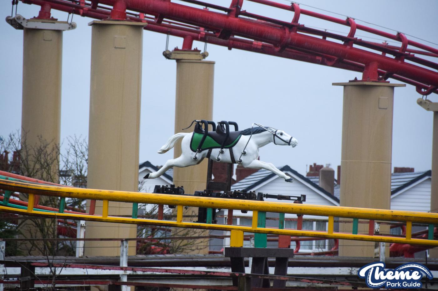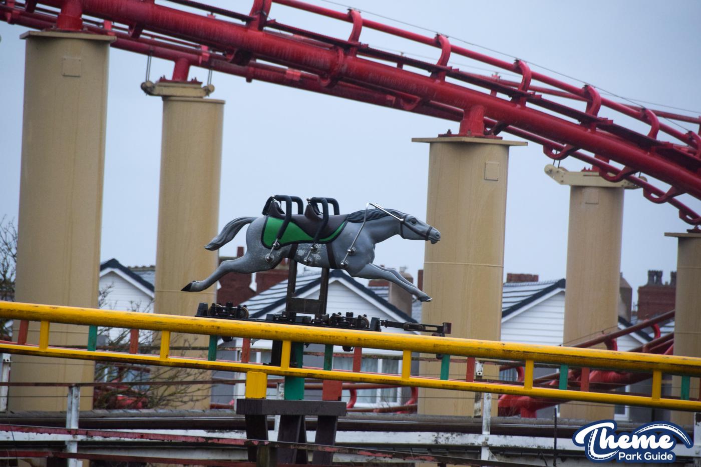 Race your friends on Steeplechase at Blackpool Pleasure Beach. Choose a race horse and race your way around the park on 3 identical tracks.
