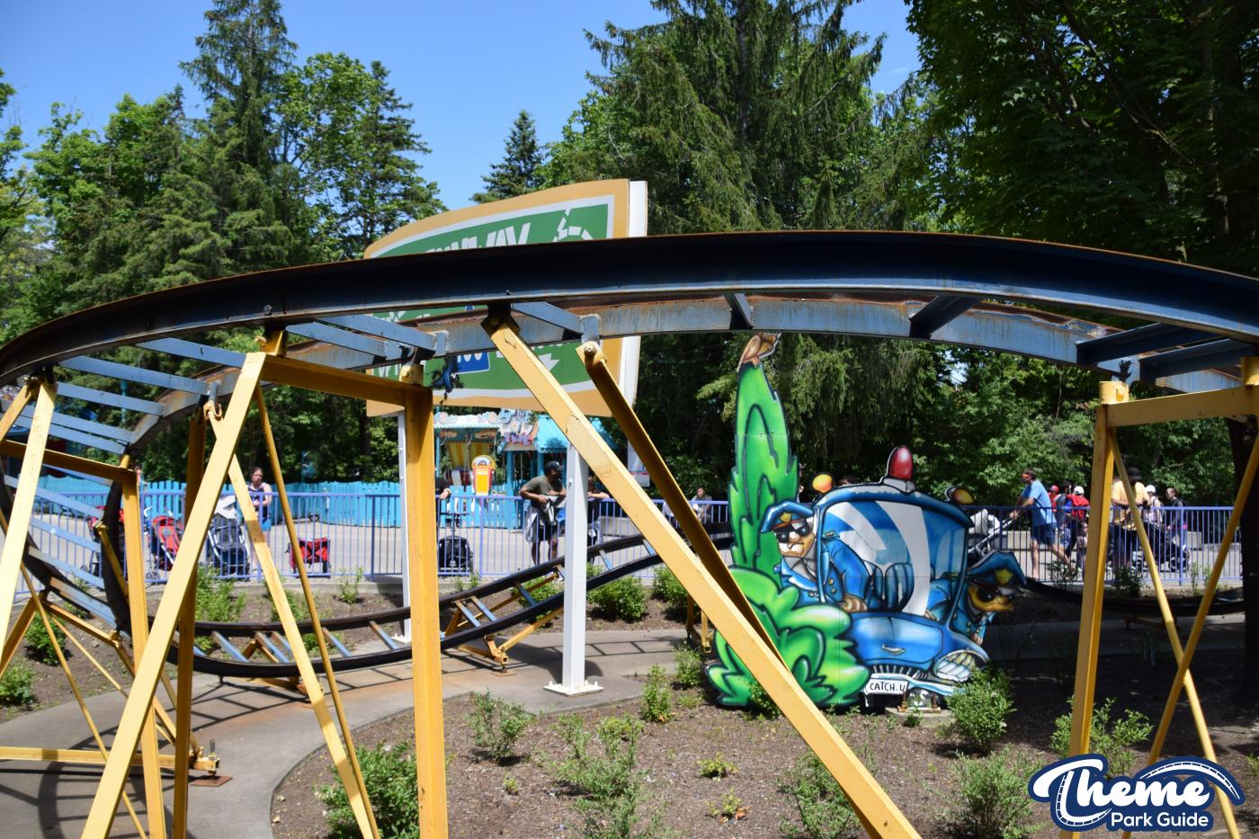 Taxi Jam is a steel coaster for kids, designed to be a child's first coaster at the Park. Kids will giggle over Taxi Jam's tickling bumps and drops as its themed train, featuring a police car chasing yellow taxi cabs, races on.